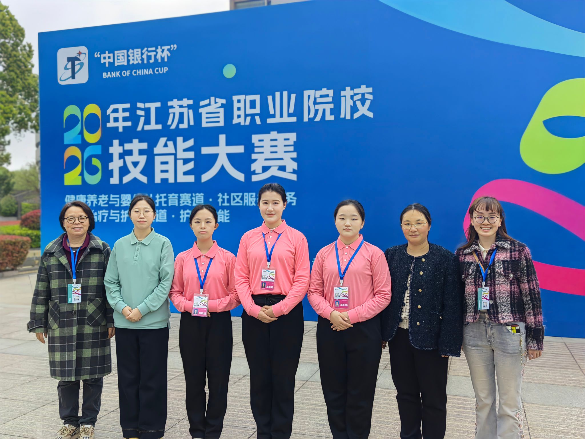 在2026年江苏省职业院校技能大赛高职组“社区服务实务”赛项中,由姚云、顾婷担任指导老师,刘俊秀、苏俊羽、吴宇曦、王莺霖等四名学生组成的团队,凭借扎实的专业技能和出色的团队协作,在比赛中稳定发挥,最终荣获该赛项高职组二等奖,充分展现了我校养老服务专业学子的专业素养与风采。