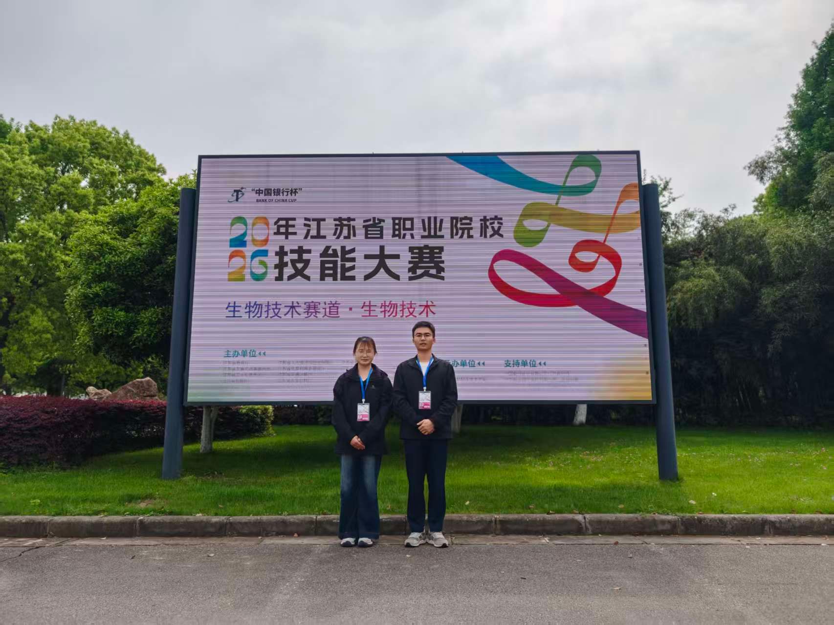 4月17日至19日,2026年江苏省职业院校技能大赛高职组“生物技术”赛项在江苏农林职业技术学院成功举办。我校纺织服装学院廖忠芹、周正涛两名同学,在指导老师郭立强、朱志杰的悉心指导下,全力以赴、沉着应战,最终荣获团体二等奖,位列全省第三,实现了我校在该赛项上的跨越式突破,书写了学校技能育人新篇章。