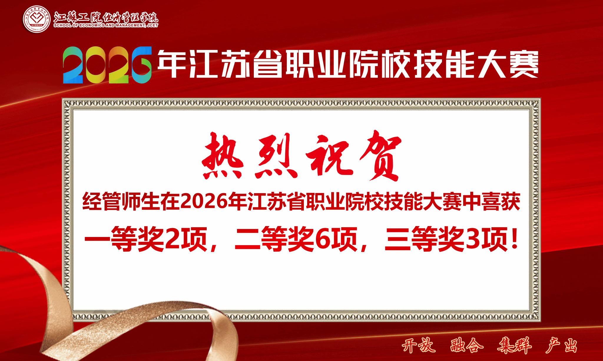 在今年的全省职业院校技能大赛中,经济管理学院共获得一等奖2项,二等奖6项,三等奖3项。充分展现了学院各专业深化“岗课赛证”综合育人的成果,也为师生搭建了专业技能竞技、行业经验交流、教学能力互促的优质平台。未来,经济管理学院将以此次大赛获奖为重要契机,持续深化职业教育教学改革,牢牢锚定新时代人才发展需求,深化产教融合、校企协同育人,不断优化专业课程体系、强化实践教学环节、夯实技能育人根基,着力提升人才培养质量,为区域社会经济高质量发展持续输送更多高素质复合型财会技术技能人才。(经济管理学院宣 陶艺/推荐 钱晋/审核)