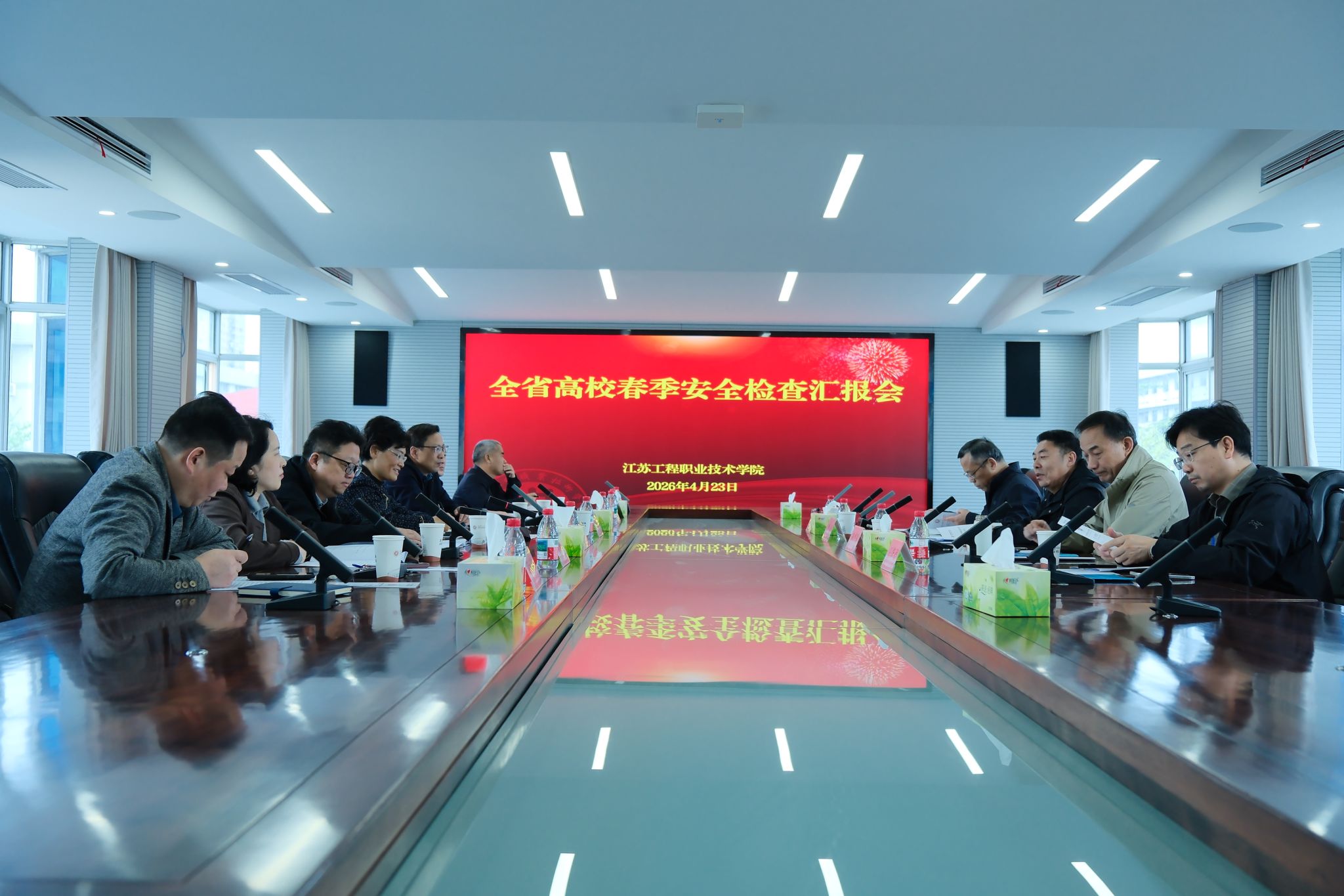 张忠围绕校园安全责任体系、安全教育、实验实训室及危化品管理等方面,汇报了我校春季学期安全工作开展情况,并介绍了2025年秋季安全检查反馈的隐患整改情况和2026年春季安全自查的隐患整改部署情况。