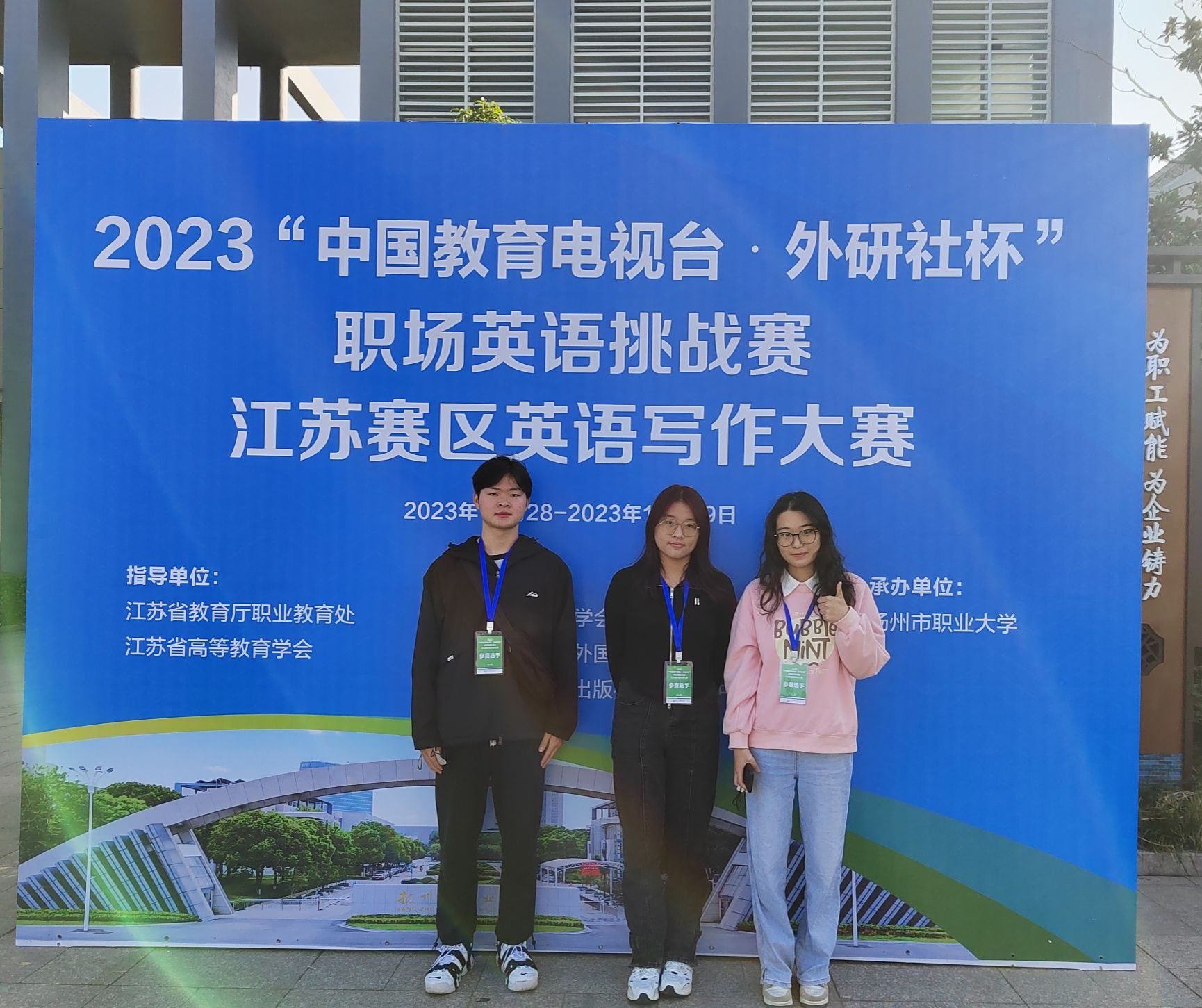 10月29日,2023“中国教育电视台·外研社杯”全国英语写作大赛(江苏赛区高职组)在扬州职业大学举行。我校三名参赛学生均获得三等奖的佳绩。