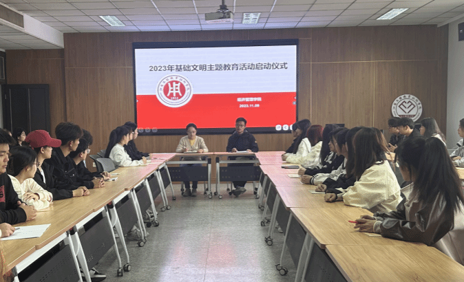 11月9日,经济管理学院举办了2023年基础文明主题教育活动启动仪式。经济管理学院党总支副书记王谦和辅导员邢雅楠出席会议,学院全体22级、23级班长参会,会议由邢雅楠主持。