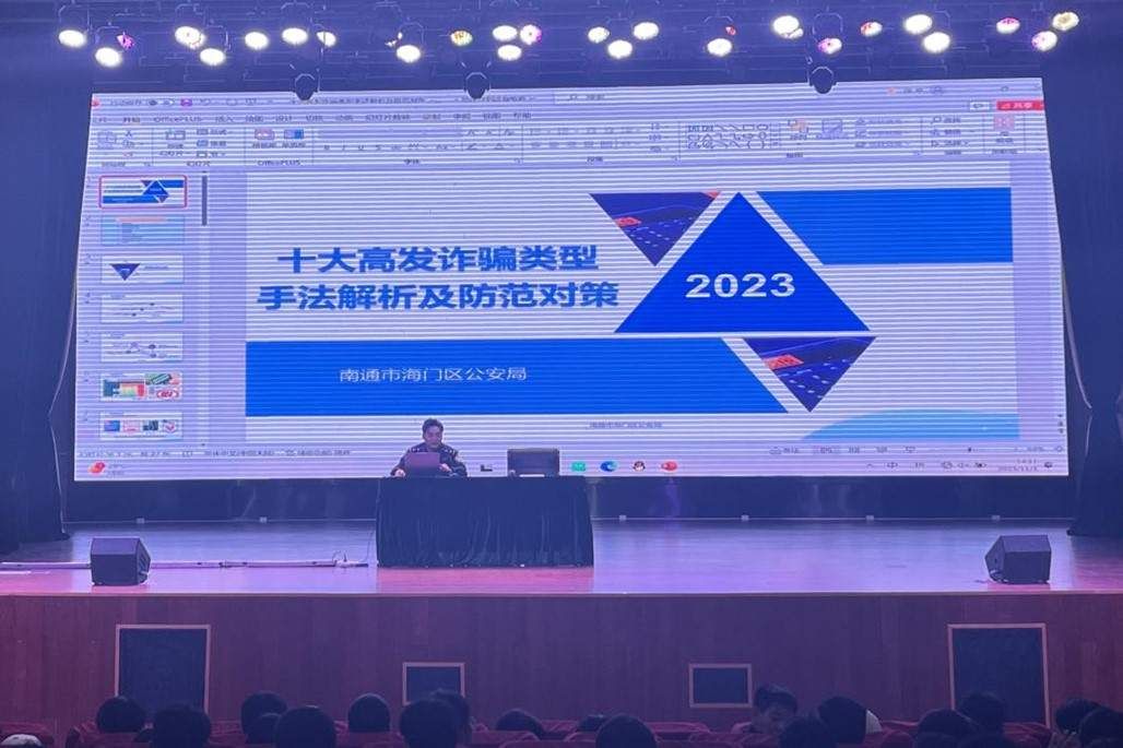 开展专题学习,提高防范能力。在活动中,学院利用线上线下双管齐下,做到防范电信诈骗知识学习全覆盖。线上组织学生关注“江苏反诈”、“快手政务新媒体号”、“苏e直播号”等媒体平台,一同观看“反诈大讲堂”系列直播课程。在新生报到之际,通过线上学习会组织新生和家长学习反诈防骗知识,并组织学生签订安全风险告知书,安装注册国家反诈中心APP。线下通过主题团日、班会和开学第一课开展安全知识学习和宣讲,组织观看反诈主题电影《猎屠》,以还原了的诈骗团伙的行骗套路,生动、直观地展现了电信诈骗的危害,帮助学生更深、更细、更全面了解网络诈骗的形式及内容。11月1日,邀请海门边防派出所民警林昊进校举办“预防电信诈骗,构建平安校园”主题讲座,林昊结合真实案例,向同学们介绍了网络兼职刷单、网购退款、校园贷、游戏账号买卖等诈骗手段,指导学生如何识别、防范各种诈骗手段,并详细讲解了被骗后应及时采取的补救措施。