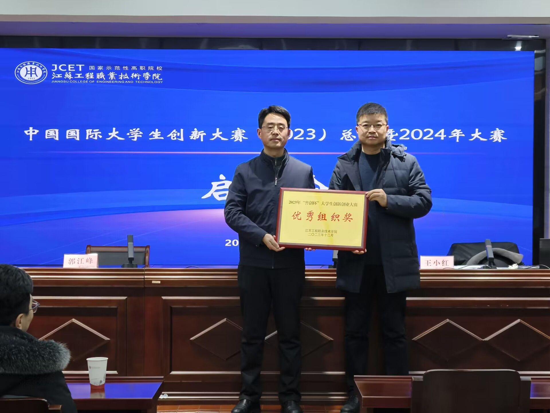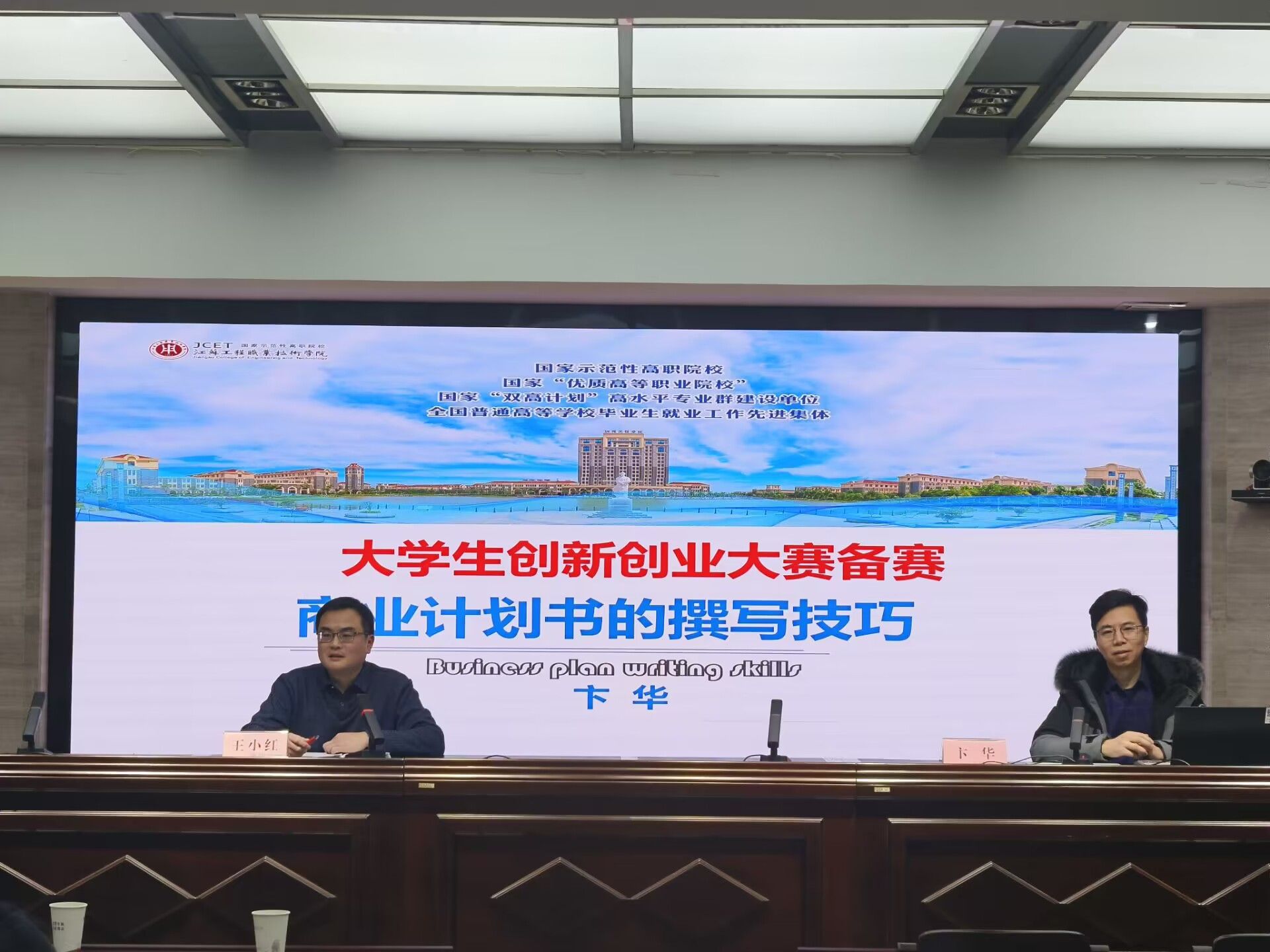 会上,对校赛优秀组织奖获奖单位——建筑工程学院进行了颁奖。王小红对学校2023年创新大赛工作进行了总结并介绍了2024年大赛备赛思路和工作计划,邀请江苏航运职业技术学院学工处副处长卞华围绕大赛项目商业计划书的撰写进行了专题讲座。
