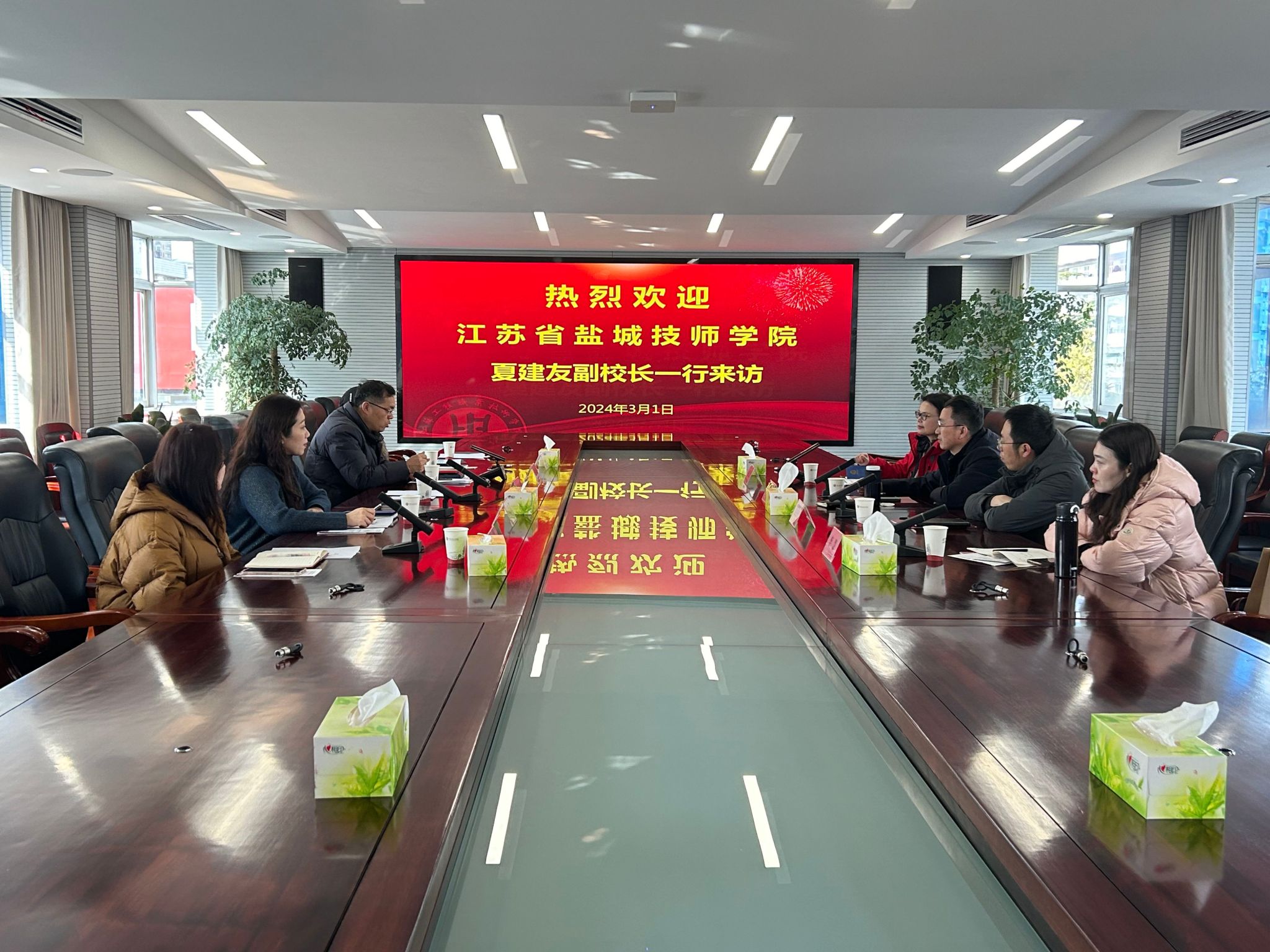 3月1日上午,盐城技师学院党委委员、副校长夏建友,继续教育学院院长金纯峰,副院长张清红,综合科科长李慧一行到访我校调研继续教育合作办学情况。我校党委副书记邓海龙、继续教育学院全体人员参加了座谈交流。会议由继续教育学院院长江荣华主持。