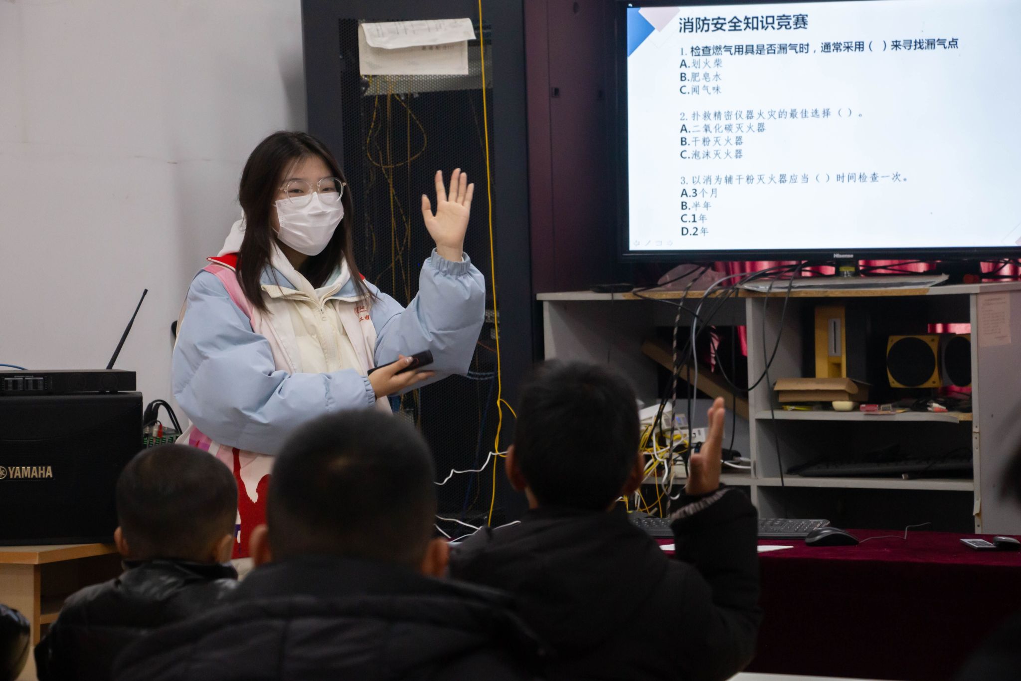活动中,志愿者在模范村村委会为乡村居民开展了一场关于消防安全的讲座,结合火灾案例和灭火器使用办法详细解说了火灾危害、日常防火、初起火灾扑救及自救逃生等消防安全知识,强调了火灾防范的重要性。志愿者们还深入乡村发放反诈骗宣传单,向群众宣传电信网络诈骗的类型、特点和危害,用鲜活的事例帮助群众提高警觉性,并帮助群众下载“国家反诈中心APP”,手把手教授群众使用方法,帮助大家擦亮眼睛,识别电信诈骗。
