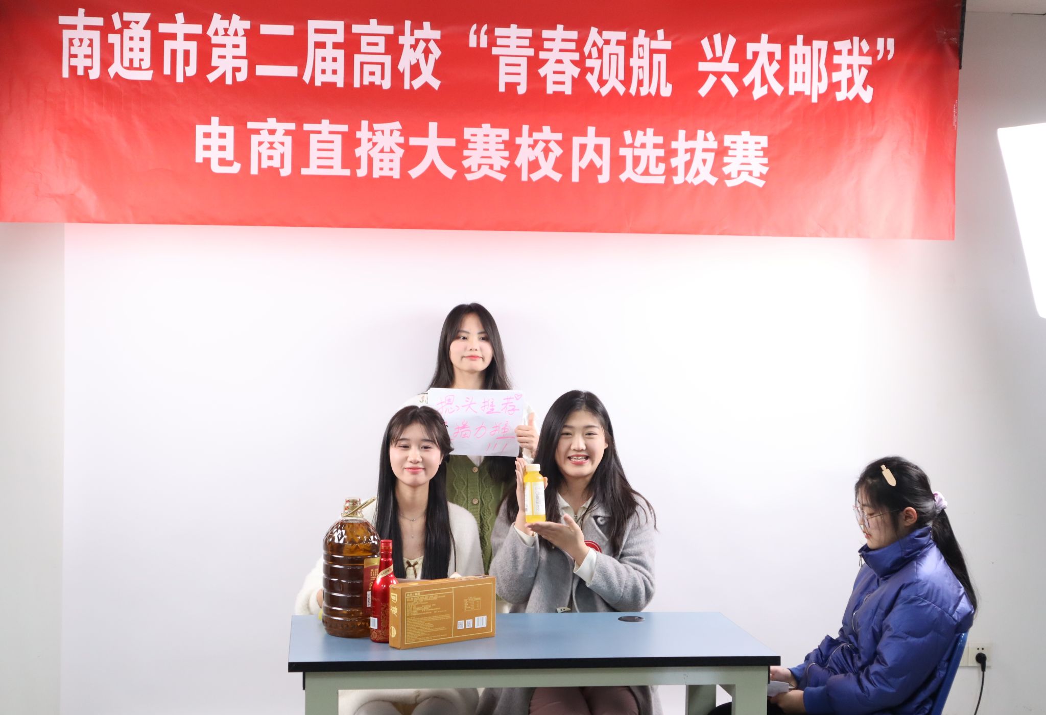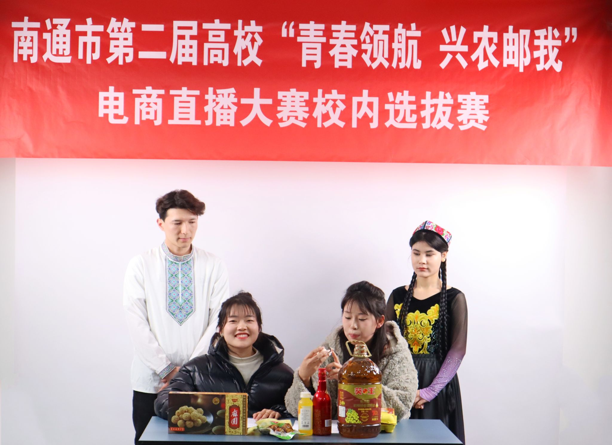 3月28日,由校团委主办、经济管理学院承办的南通市第二届高校“青春领航 兴农邮我”电商直播大赛校内选拔赛在致知楼503举行。基础教学部党总支书记顾晓梅、校团委副书记张禧嘉、经济管理学院电子商务教研室主任肖琦、基础教学部应用汉语教研室主任夏蕾、双创实践中心主任石慧担任评委。