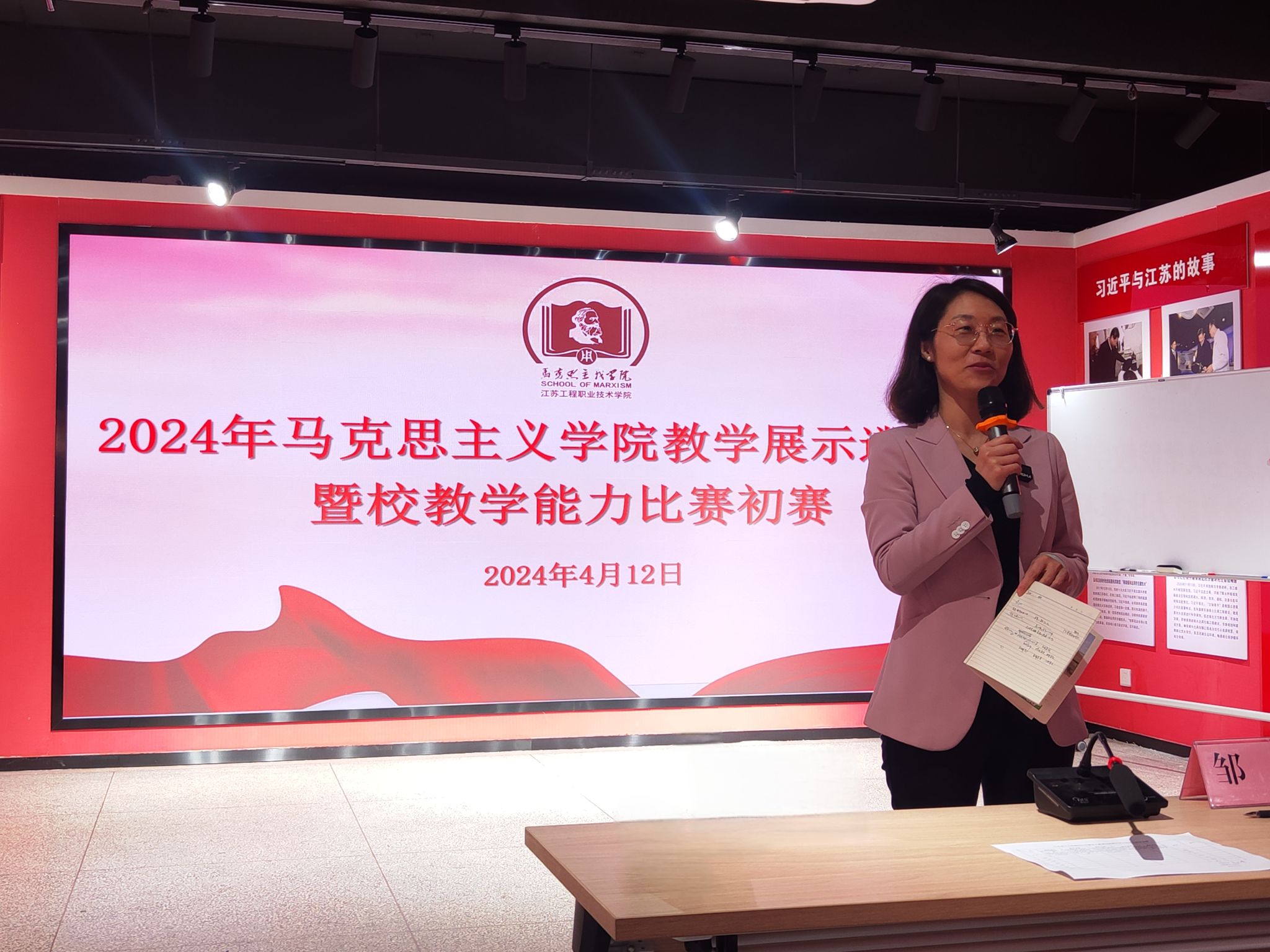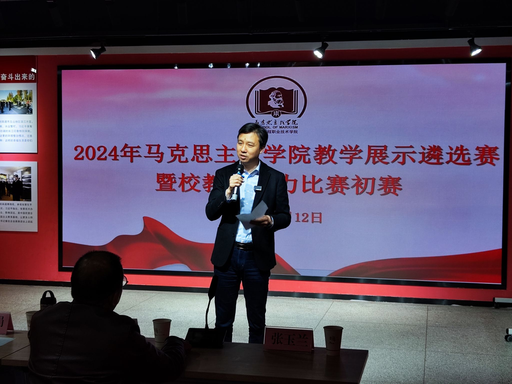 4月12日下午,马克思主义学院在新思想践悟馆举办教学比赛遴选暨教学能力比赛初赛。大赛邀请南通卫生高等职业技术学校党委副书记、2022年全国职业院校技能大赛教学能力比赛思政组一等奖获得者邹娟,张謇研究中心(南通)常务副会长、我校关工委社会主义核心价值观宣讲团成员马斌,江苏省高校思政理论课教学指导委员会委员、江苏开放大学马克思主义学院教授张玉兰,无锡职业技术学院马克思主义学院副教授、第三届全国高校思想政治理论课教学展示(高职高专)组特等奖获得者徐海楠等专家担任评委。学院党政领导及全体思政教师现场观摩比赛。活动由学院副院长朱建主持。