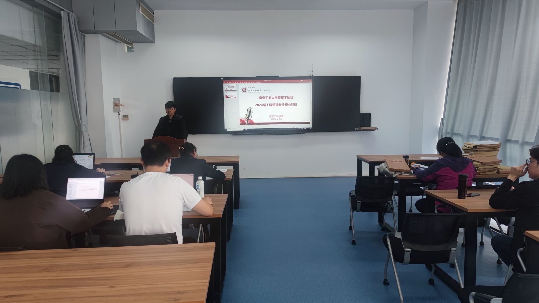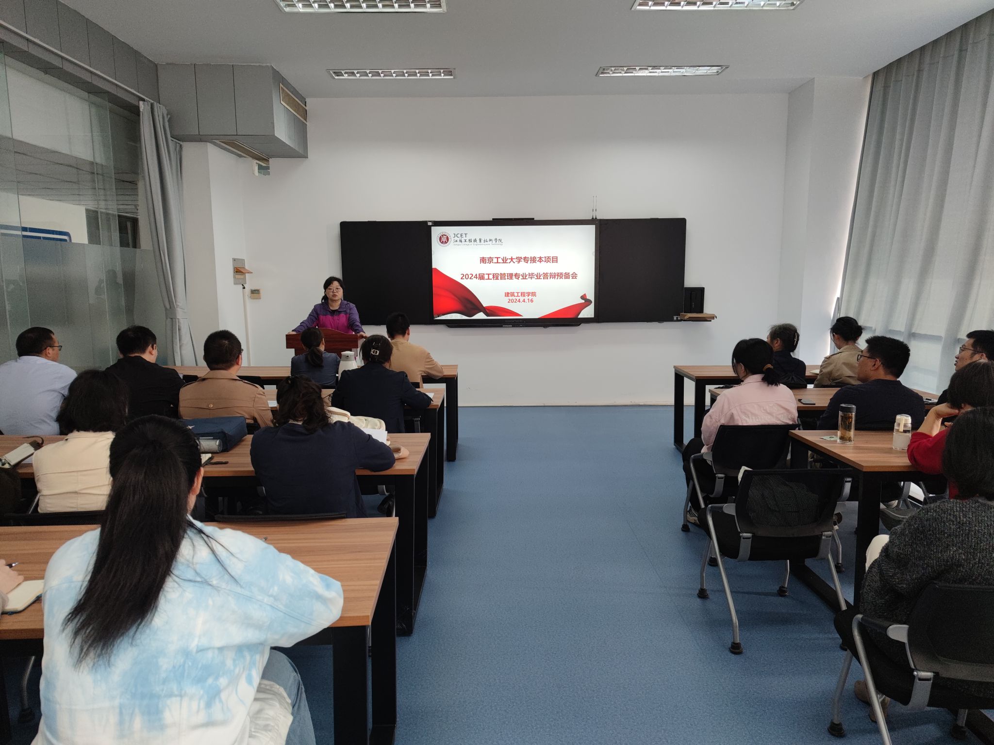 4月15-16日,建筑工程学院举行了2024届南京工业大学专接本工程管理专业学生毕业设计答辩工作。161名毕业生回校参加答辩,两名学生因工作原因申请了线上答辩。答辩分6个小组进行,南京工业大学继续教育学院贺红主任、唐明怡教授等7位教师到校指导,建筑工程学院40余名专业教师参与了答辩工作。