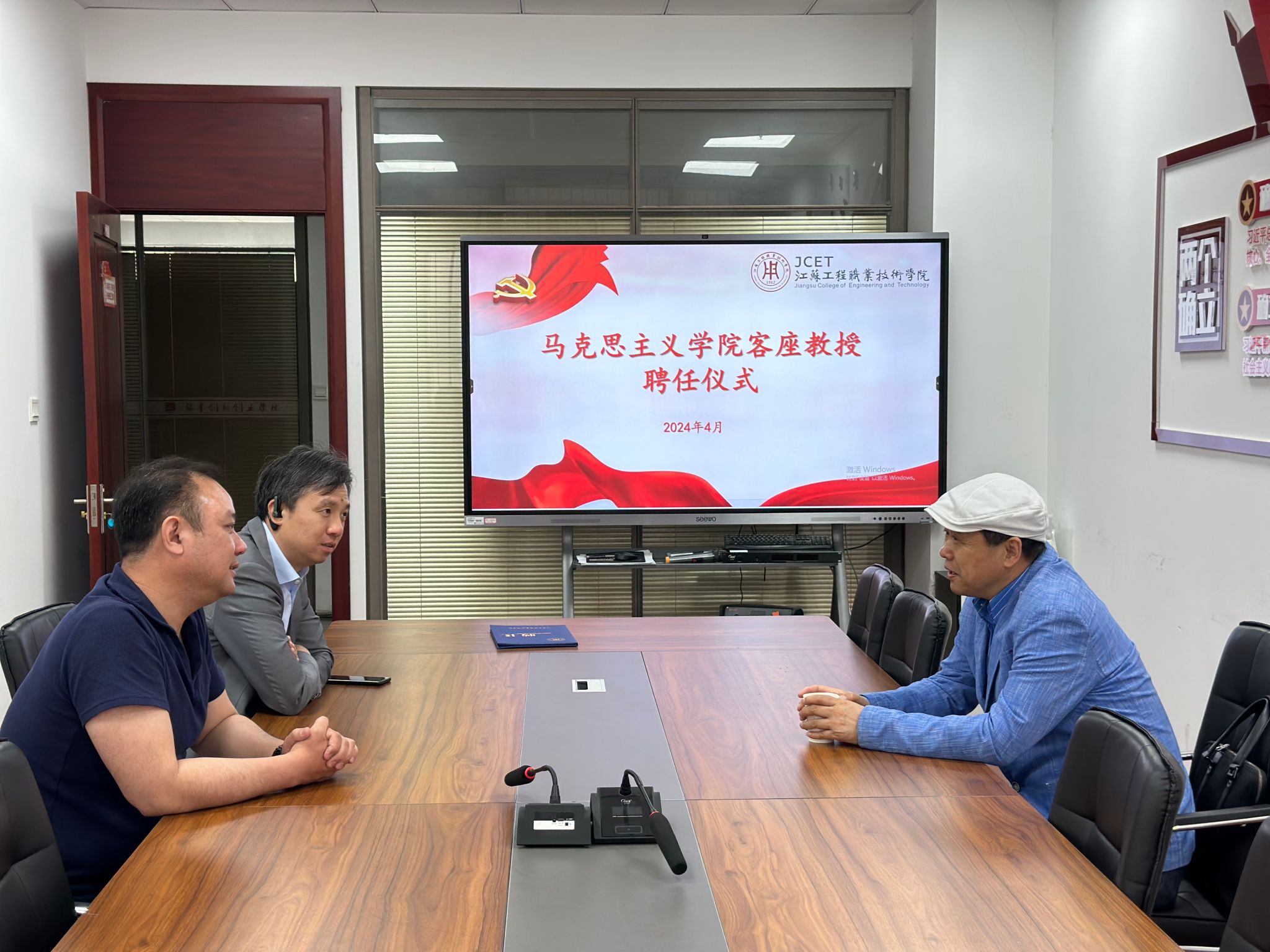 4月24日上午,南通企业文化研究会会长李建军莅临我校马克思主义学院参加客座教授受聘仪式。马克思主义学院党总支书记钱晋,副院长朱建热情接待了李建军会长,并向他颁发了客座教授聘书。