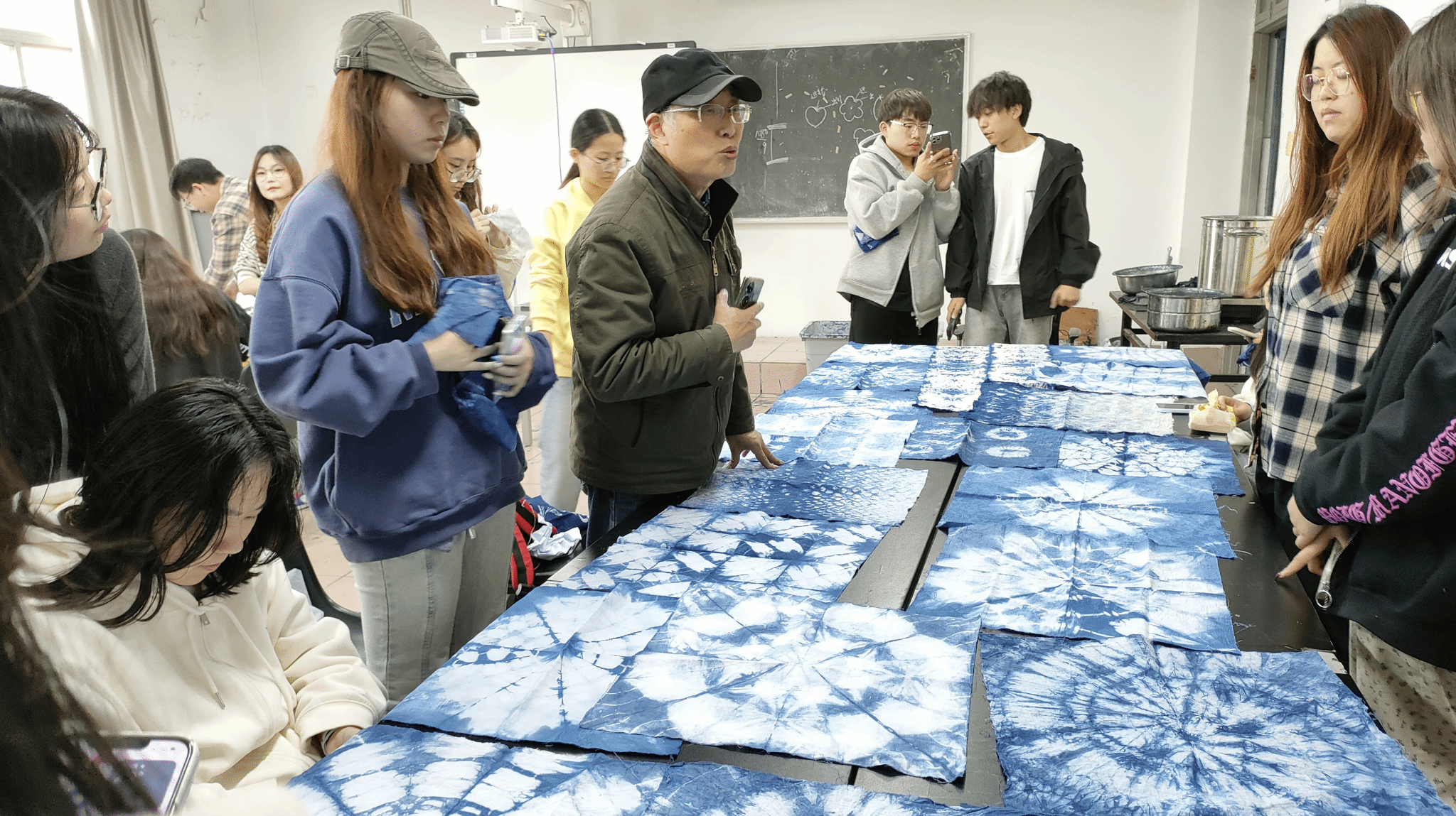 4月15日-19日,艺术设计学院22家纺班和22艺术设计一班的非遗工作坊课程,邀请江苏省工艺美术大师龚建军老师进行手染项目的教学。