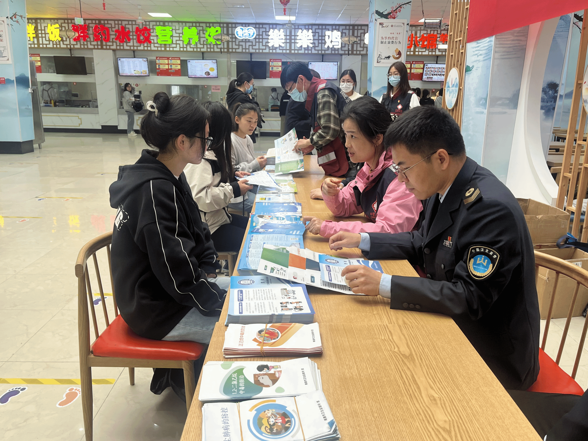 在现场,通过悬挂宣传横幅、摆放宣传展板、发放职业病防治宣传资料、提供职业健康咨询服务等多种形式为广大师生普及职业病防治知识,重点关注即将就业学生群体,帮助他们认识到什么是职业病、关于职业病有哪些法律法规、各种职业性有害因素的危害以及如何预防职业病等,使学生能够在就业前先树立起个人职业防护的意识,知晓劳动者所应享有的权益,提高学生自我防治、自我保护的能力,注重预防关口前移,提升职业健康素养水平。