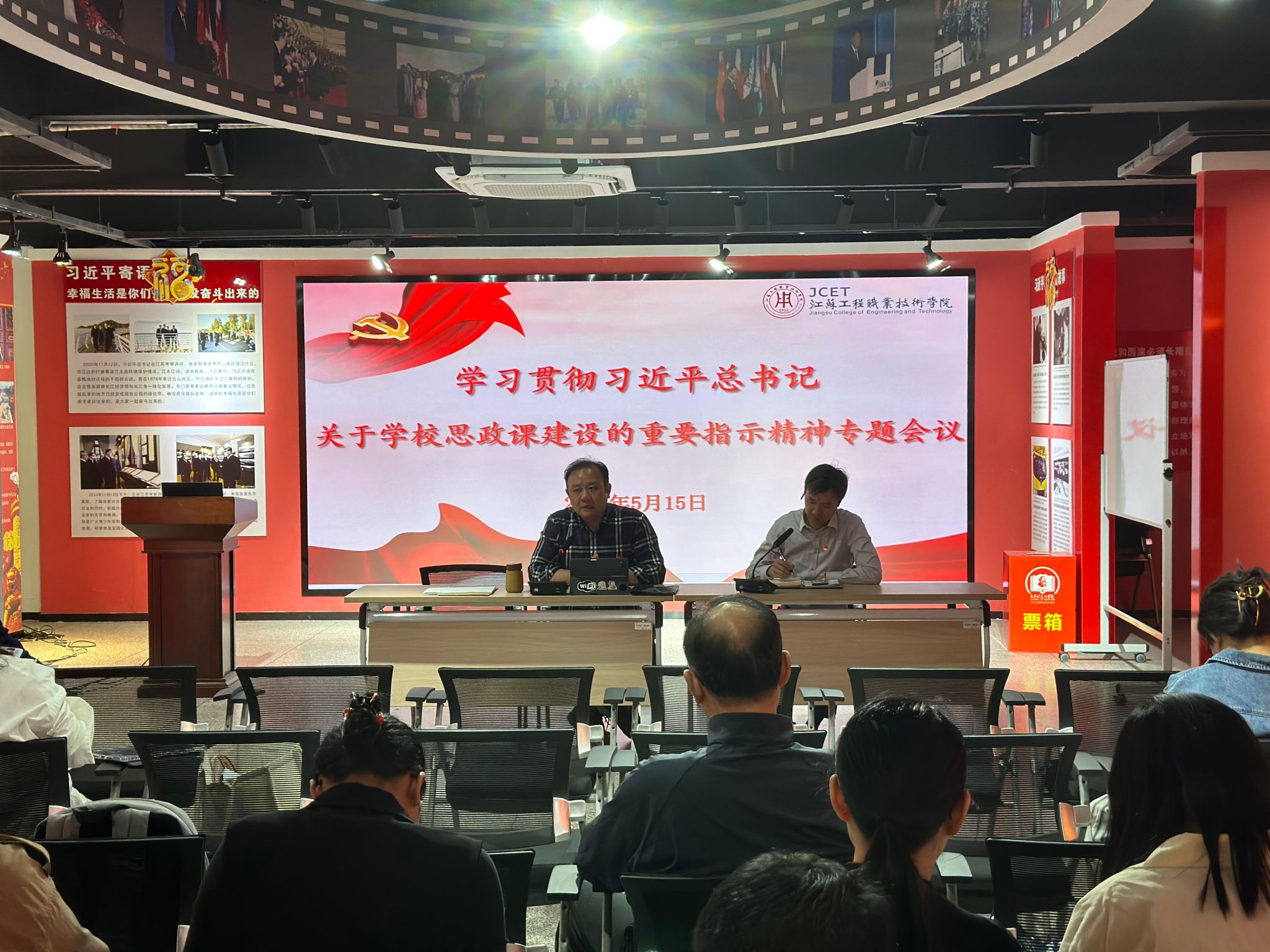 5月15日下午,马克思主义学院党总支在新思想践悟馆召开全体党员教师大会,传达学习习近平总书记对学校思政课建设作出的重要指示精神。学院党政领导及全体思政教师参加会议,会议由学院党总支书记钱晋主持。