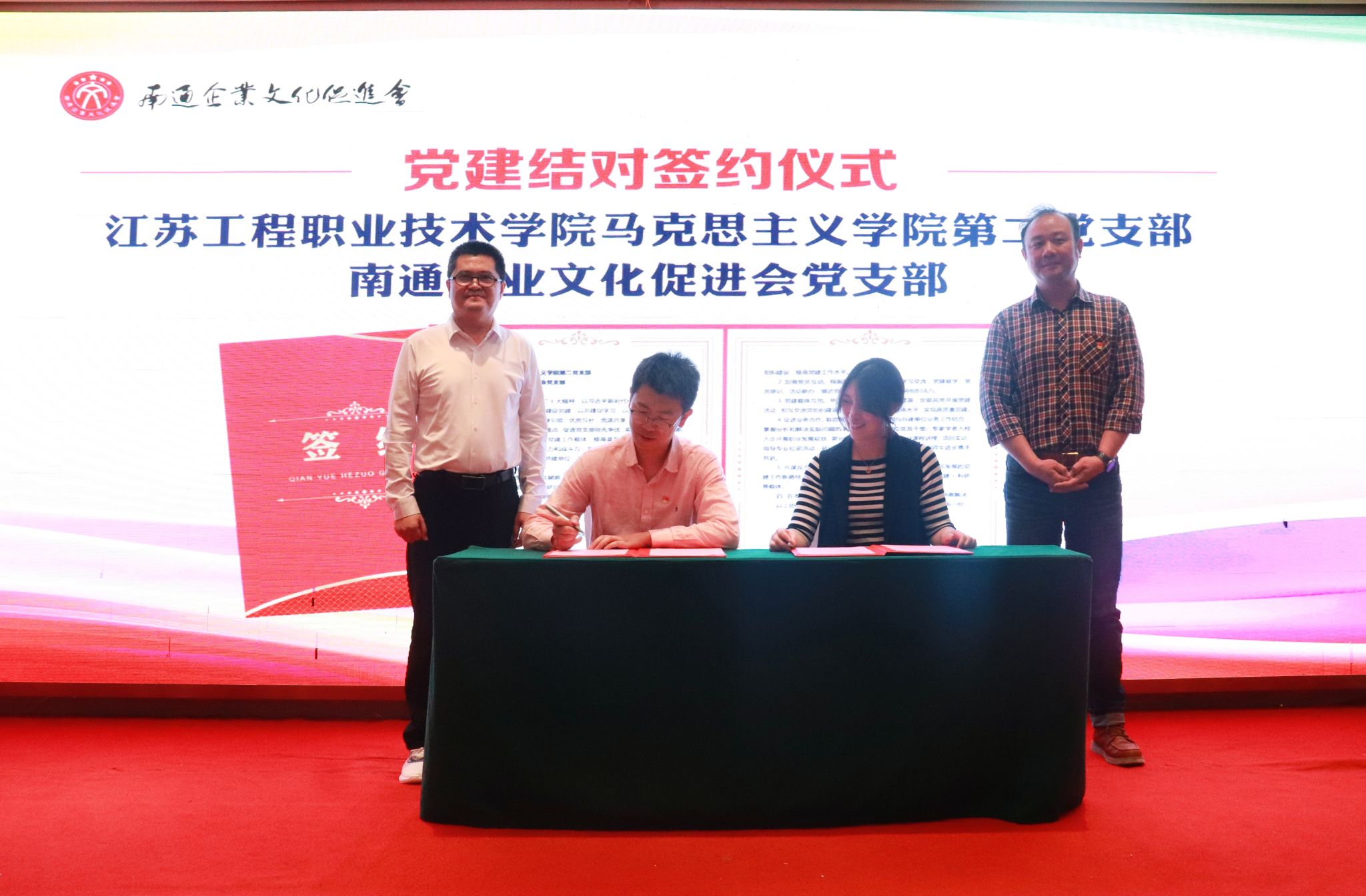5月17日下午,我校马克思主义学院第二党支部与南通企业文化促进会党支部共同举办了基层党组织共建签约仪式。马克思主义学院党总支书记钱晋和南通企业文化促进会会长李建军、秘书长林毅等出席仪式。
