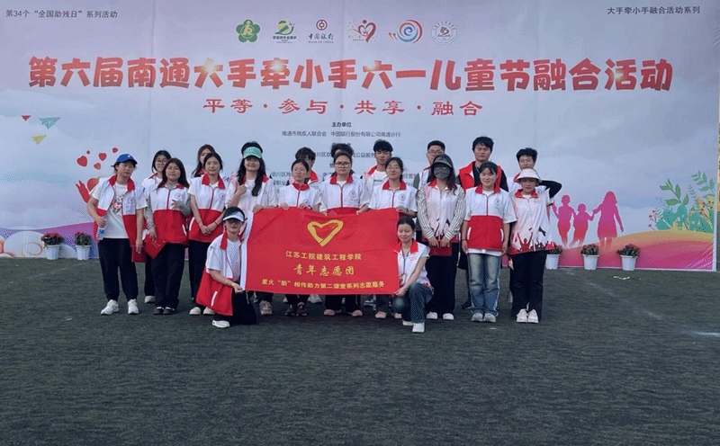 为庆祝第34个全国助残日,5月19日,南通市残疾人联合会与中国银行南通分行联合举办“第六届南通大手牵小手六一儿童节融合活动”。我校建筑工程学院青年志愿团24名学生志愿者代表受邀参加了活动。