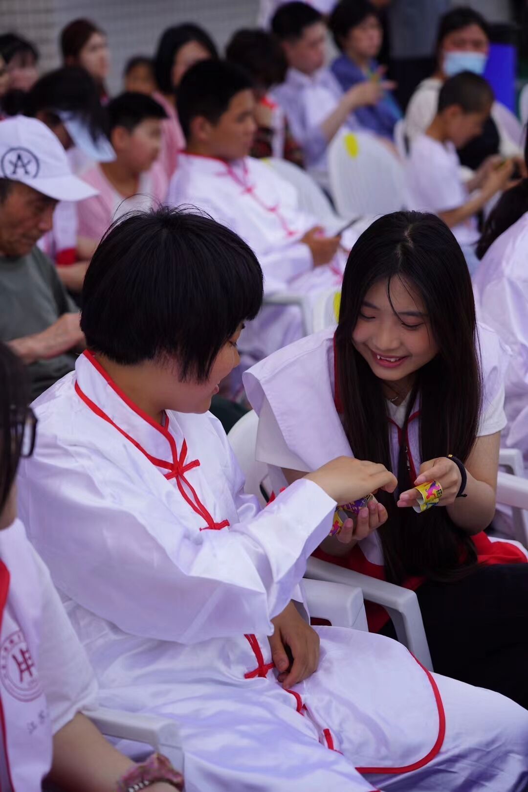 活动现场,孩子们带来了手鼓《大王叫我来巡山》《上春山》等精彩的才艺表演。我校志愿者们在现场维护秩序,引导孩子们自主完成游戏,为他们送去支持和信心,并共同参与了充满趣味的拔河比赛、踩气球、春种秋收等比赛。我校志愿团荣获本次活动团体总分一等奖,并获得了由南通市残联颁发的“优秀志愿者”荣誉证书。