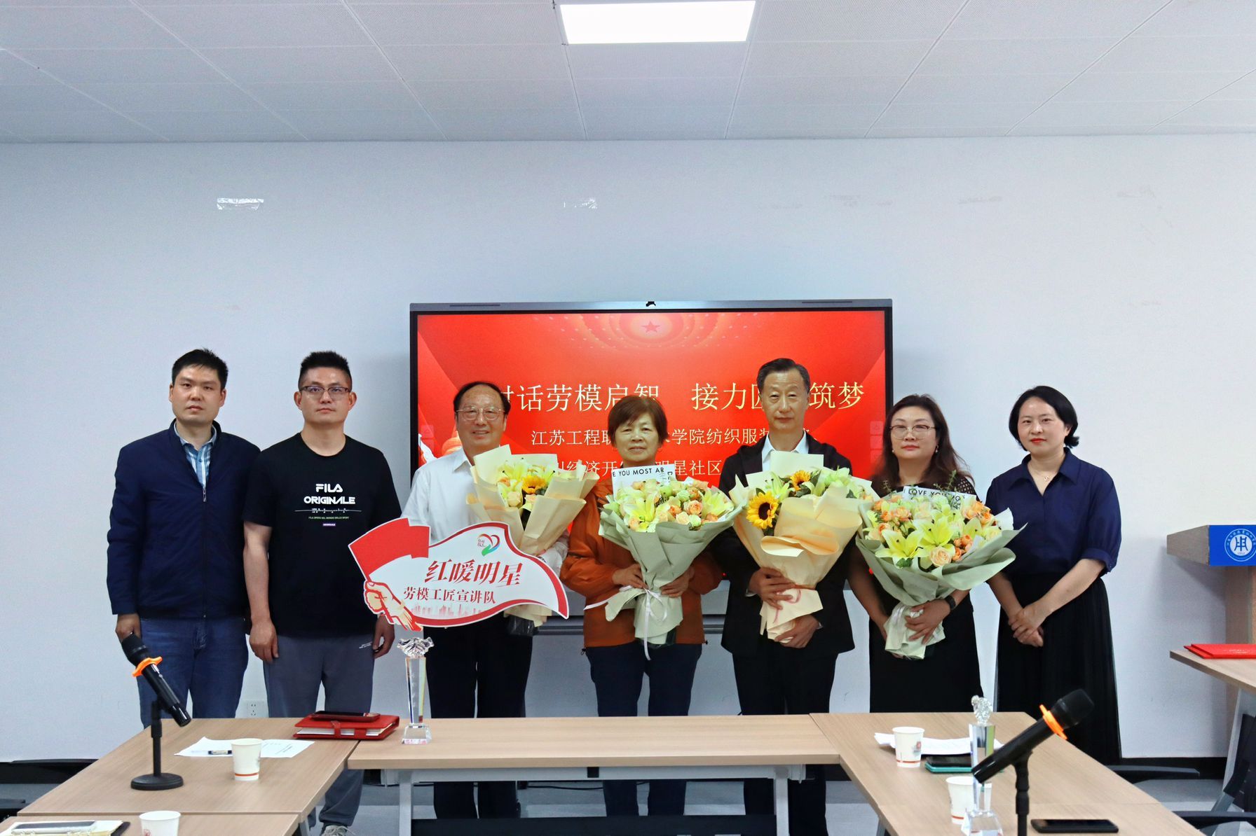 夏爱萍介绍了学院的发展历程、专业发展以及毕业生就业情况。王建春重点介绍了“红暖明星”劳模宣讲队的建立初心、运行情况及发展愿景。劳模宣讲团四位劳模与师生分享了他们的成长经历和人生感悟。南通市劳模解建达以自身从人力到人手到人才再到人物的华丽蜕变为例,分享了如何成长、成才、成功的经验,勉励同学们要科学分配一天中的3个8小时,努力提高自我学习、自我修炼、自我挑战、创造价值的能力,掌握工学研方法,注重理论与实践的结合。江苏省劳模阚桂兰结合自身从普通女工到技术能手的成长史,分享了纺织行业的发展变化以及自己投身基层治理、服务公益的心得体会。原老山前线某部班长、江苏省劳模何伟结合自身经历勉励同学们要敢吃苦、善吃苦、能吃苦,用奉献精神、扎根精神铸匠心。全国纺织工业劳动模范张菊芳分享了自己历经苦难和磨砺最后创富创业的历程,勉励同学们脚踏实地、潜心钻研,做到干一行、爱一行、专一行,同时以传统文化做人,以科学管理做事。