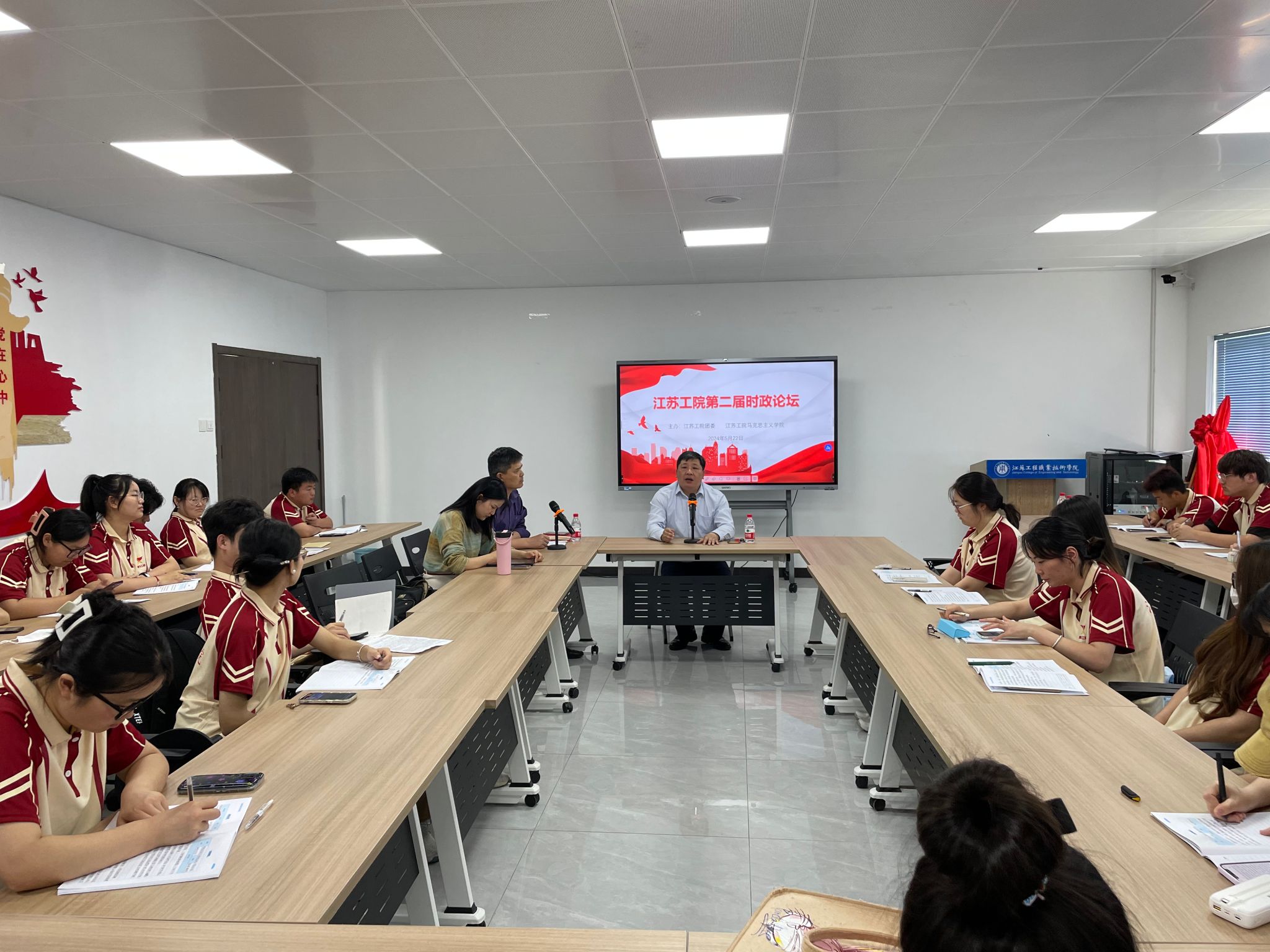 5月22日中午,由校团委和马克思主义学院共同主办,马克思主义学院形势与政策教研室承办的师生时政论坛在崇川校区一站式学生社区开讲。本期主题为“展望两岸关系 共谋统一大业”。校“青马班”全体学生、马克思主义学院教师代表参加,形势与政策教研室主任薛宝志主持。
