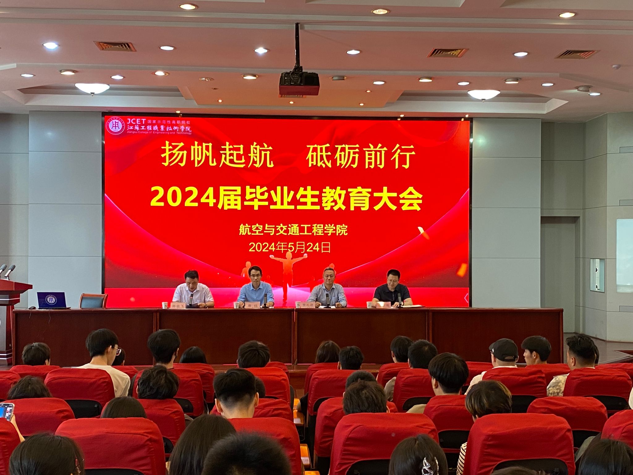 5月24日,航空与交通工程学院在致知楼报告厅举办2024届毕业生教育大会,学院党政领导班子、毕业班班主任、辅导员以及全体毕业生参加大会。会议由党总支副书记陈益飞主持。