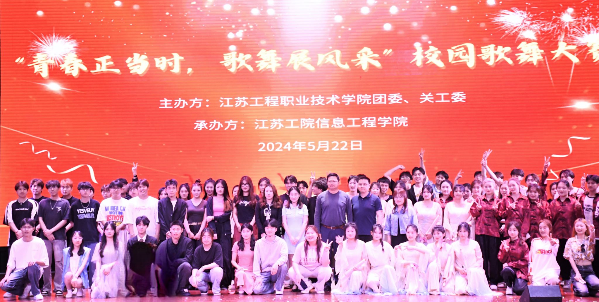 5月22日晚,由校团委、关工委主办,信息工程学院承办的大学生艺术文化节“青春正当时,歌舞展风采”校园歌舞大赛于海门实训基地800人报告厅落下帷幕。海门校区管理办公室主任于镇洲,基础教学部主任胡革,团委书记徐磊,学工处副处长刘宇,校关工委委员、建筑工程学院关工委常务副主任庄志新受邀担任评委。团委副书记沈雯、信息工程学院团总支书记秦亚杰、副书记夏晶晶与海门校区各学院600多名青年学生代表观看了比赛。