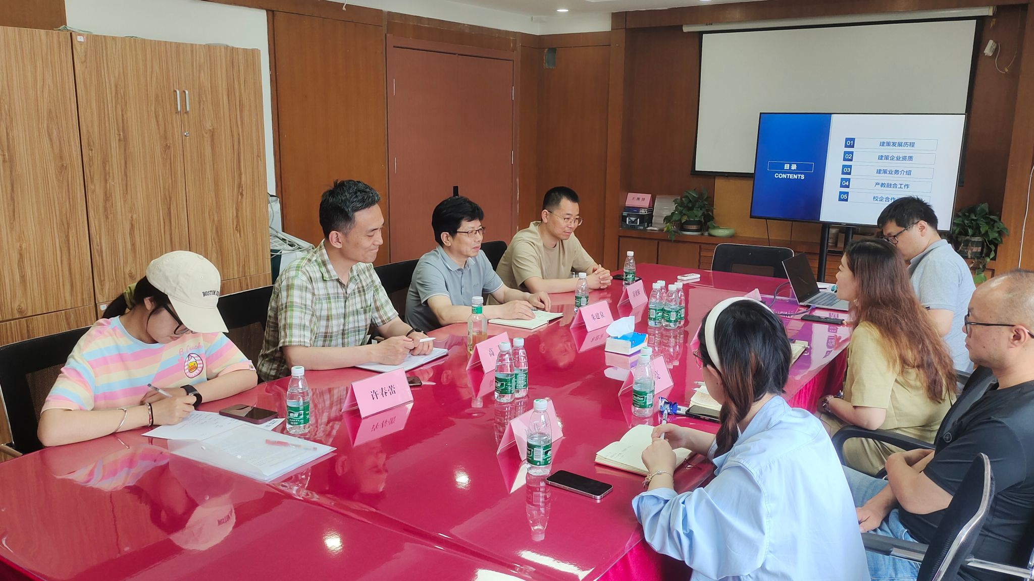 南京建策科技股份有限公司技术总监张林炜介绍了公司的发展历程、主要业务以及产教融合模式,希望通过和学校的合作,以共建毕业生实习就业基地为契机,加强校企合作与交流,推动企业发展。朱建泉指出,通过建立实习就业基地,一方面可以为学生提供实习和工作平台,为技术技能型人才培养提供有力支撑,提升学生就业对口率;另一方面,可以为企业提供人才输送渠道,推动企业健康发展,实现校企互动和双赢。