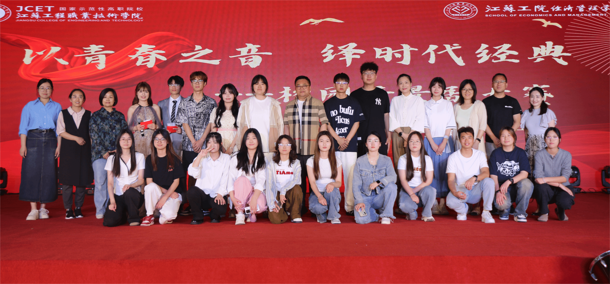 5月29日下午,由共青团江苏工程职业技术学院委员会、关工委主办,经济管理学院团总支承办的大学生文化艺术节“以青春之音,绎时代经典”校园情景剧大赛于崇川校区文体馆落下帷幕。南通师范高等专科学校工会主席许迅、南通市曲艺家协会副主席王美娟、审计处副处长(主持工作)李强、党委组织部副部长宁尚洁、党委宣传部副部长蒋丽华、关工委老同志代表龚媛娟担任本次大赛评委,辅导员以及近300名学生观看了比赛。