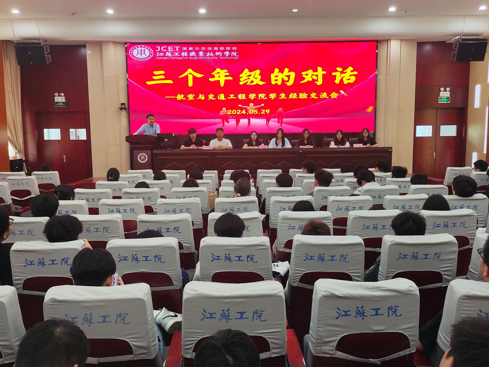 5月29日,航空与交通工程学院在海门校区200人报告厅举办“三个年级的对话”活动。学院党总支副书记陈益飞,辅导员温蝶,大一、大二学生代表参加了交流会,21汽车技术一班奚宇琪、王赛男、21轨道运营五班褚肖悦应邀作现场分享和交流。