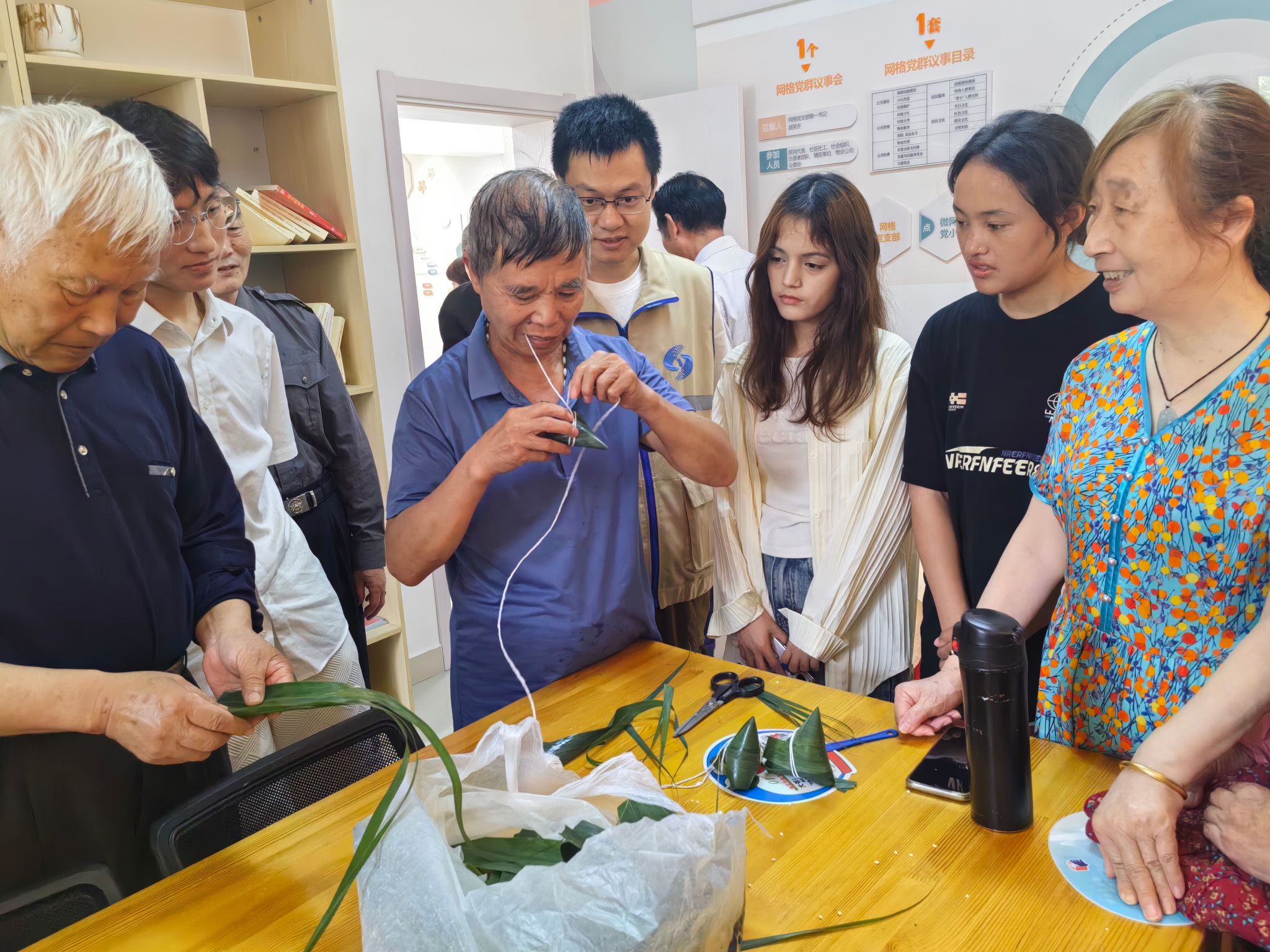 6月4日下午,校养正辅导员工作室、艺术设计学院携手学田街道千禧园社区新时代文明实践站、学田街道益善社工事务所,在千禧园社区“禧上梅梢”网格党群服务站举办“阅见学田粽飘香 石榴花开爱满园”校地共庆端午活动。