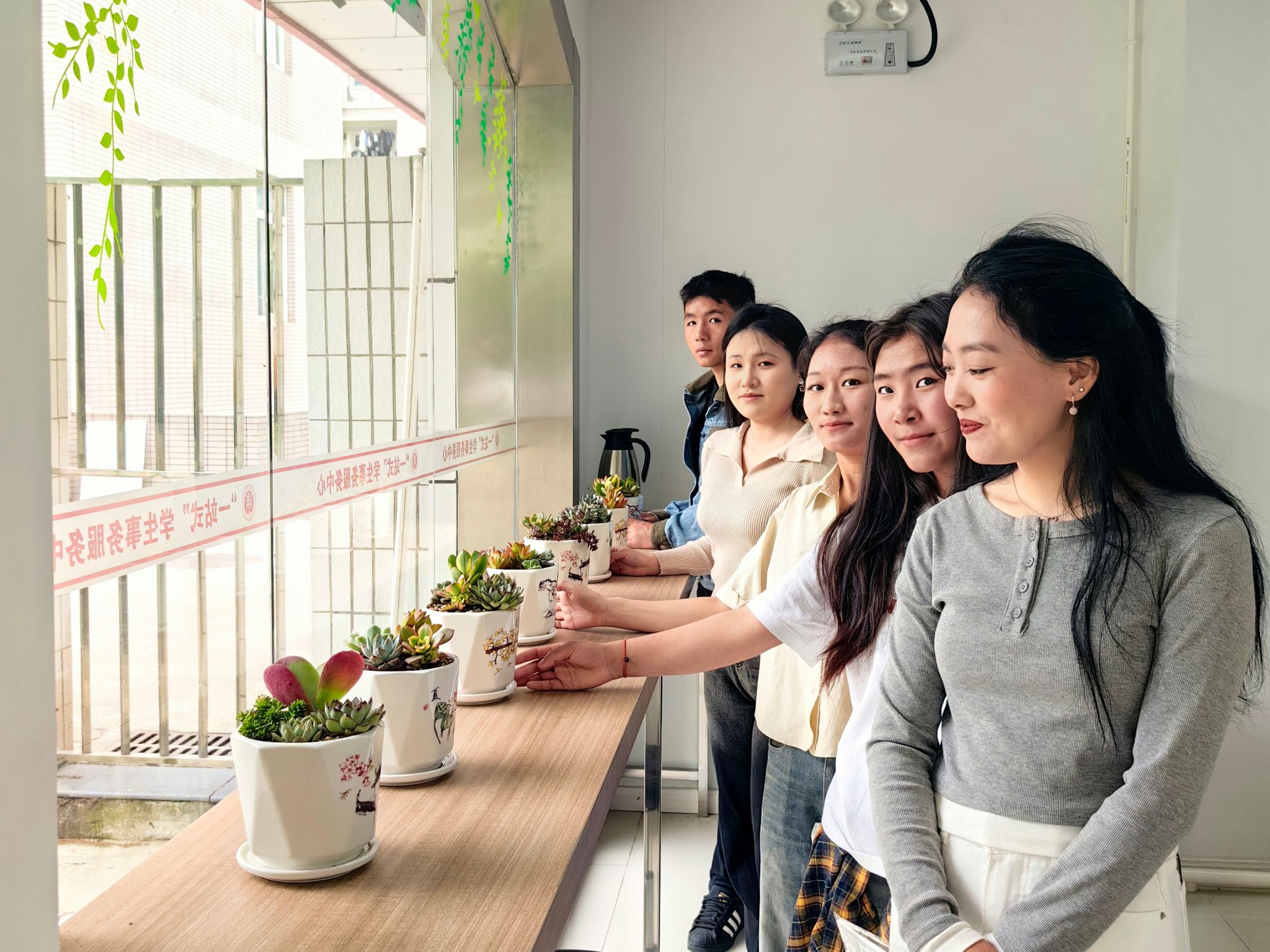 活动期间,韩政为同学们详细讲解了盆景的概念、工具使用、布局设计原则、植物养护等相关知识。每位参与者在老师的示范和指导下,用美妙的构思和丰富的想象力创造出了新颖有趣的作品,并将“春夏秋冬”盆景送到“一站式”学生社区共享空间,帮助美化学生社区办公环境。