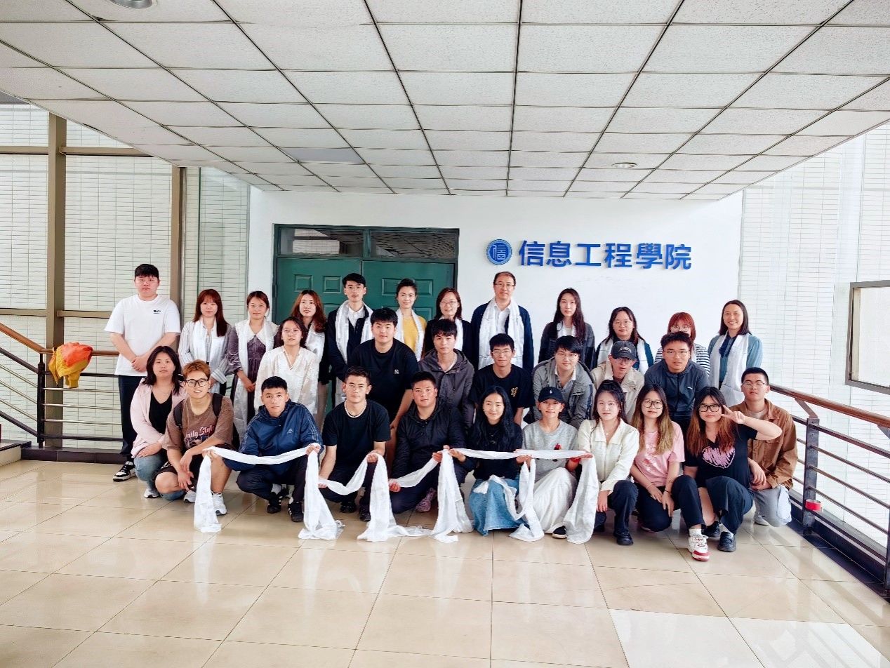 5月31日,藏族毕业生开展“敬献洁白哈达,以表感恩之情”主题活动。校党委委员、副校长丛彬彬、孙兵、郭江峰,学工处处长徐明,团委副书记沈雯,信息工程学院副院长范君、王欣以及各二级学院辅导员出席活动。
