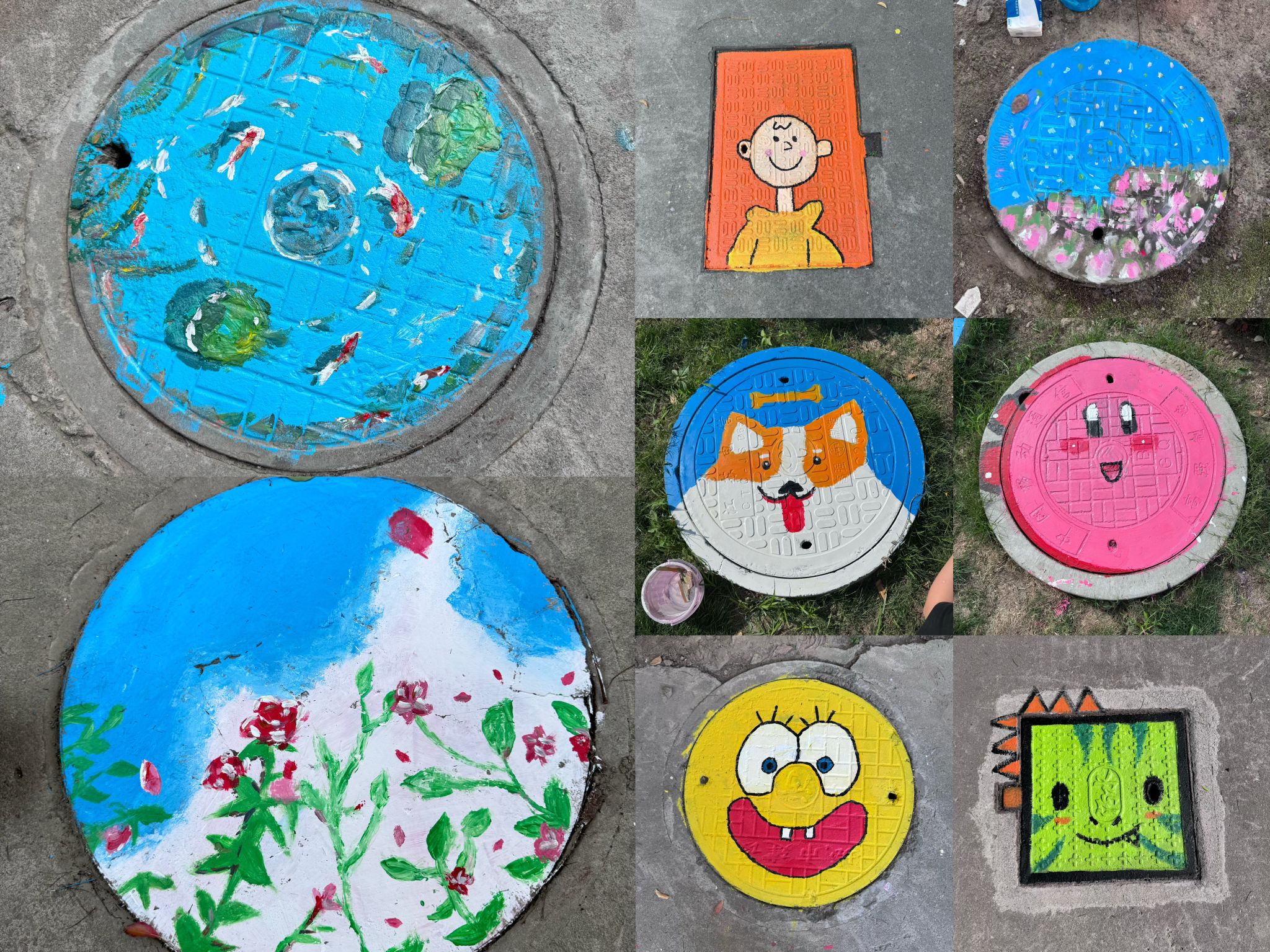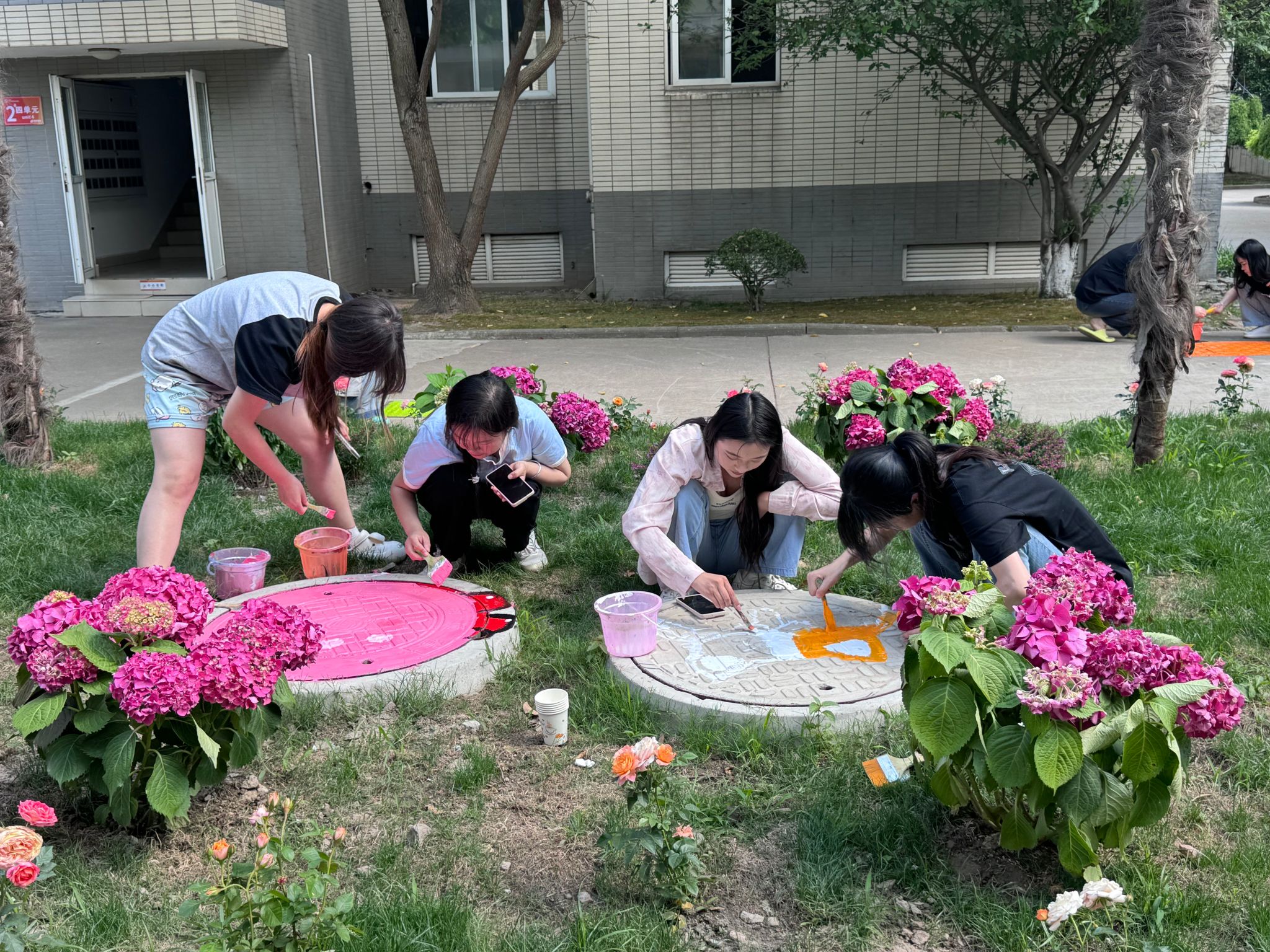 活动现场,彩色颜料与画笔交织成一幅幅生动的画面。来自艺术设计学院不同专业的学生们,以宿舍楼前的井盖为画布,发挥各自的想象力和创造力,将原本冷冰冰、单调无味的井盖变得色彩斑斓、富有生机。他们用心勾勒着每一个细节,用色彩表达着对美好生活的向往和追求。经过几个小时的努力,原本不起眼的井盖被赋予了新的生命和活力,成为了一道道亮丽的风景线。同学们纷纷表示,这些井盖绘画作品不仅美化了校园环境,也增添了浓厚的文化氛围。