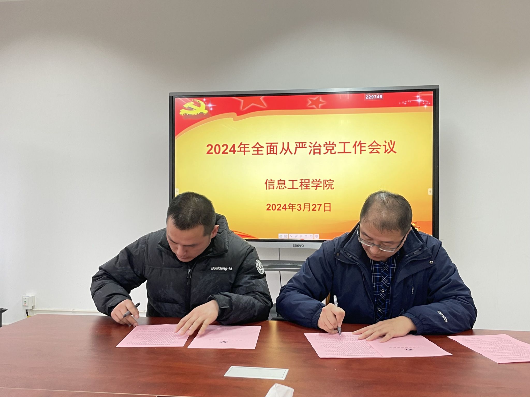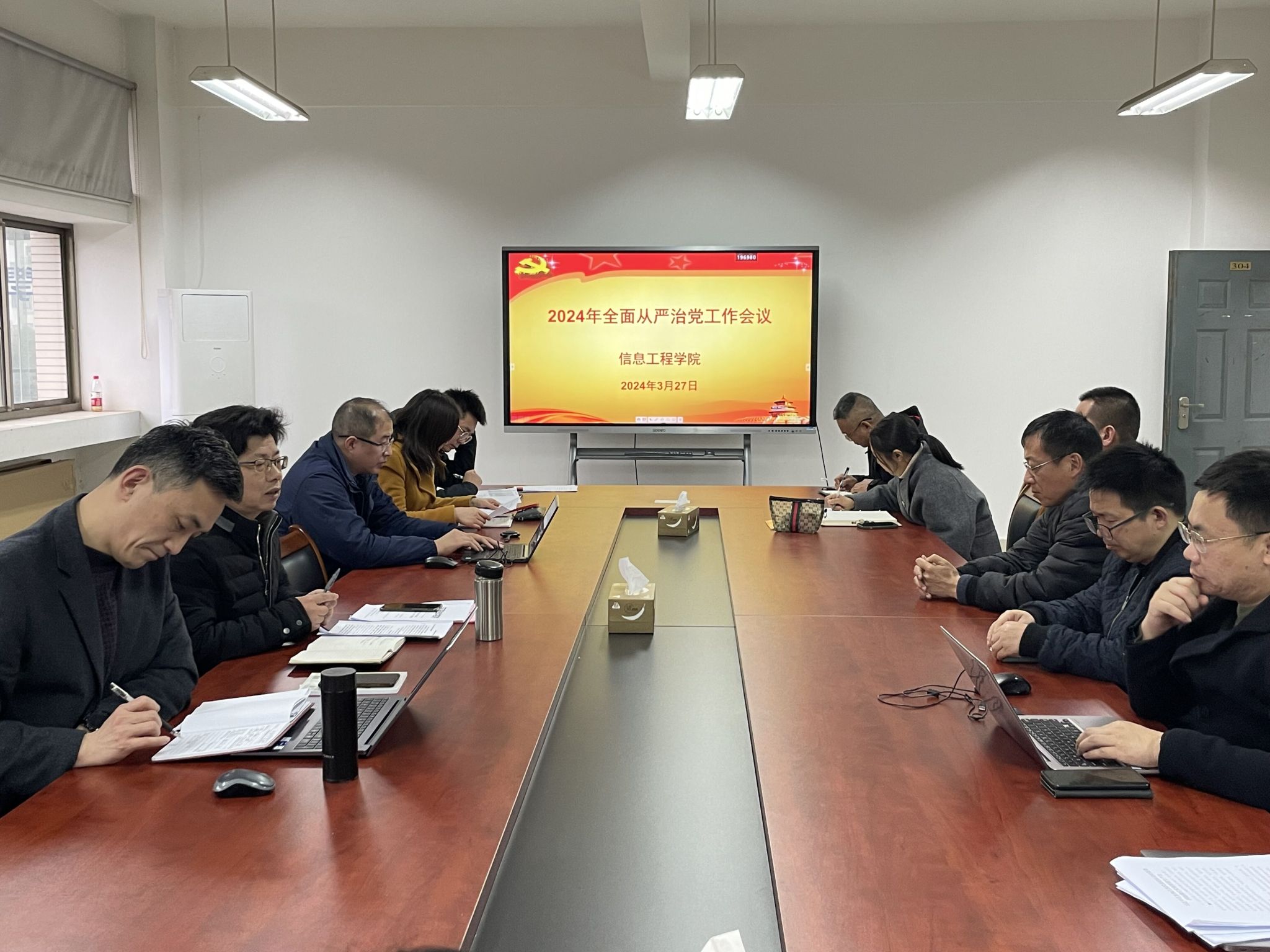3月27日下午,信息工程学院在强毅楼304会议室召开2024年全面从严治党工作会议。会议由学院党总支书记朱建泉主持,全体教职工参加。