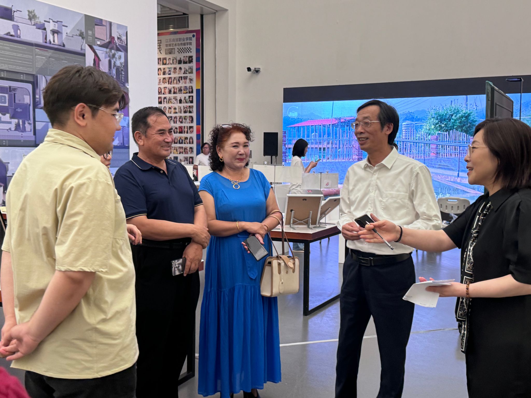 在观展过程中,秦志林对艾孜麦提·图尔贡的父母不远千里来到学校表示欢迎和感谢并亲切交流。他强调,家长在孩子的成长过程中扮演着至关重要的角色,家校共育是培养优秀人才的重要途径。他希望家长们能够继续支持学校的工作,共同为孩子的未来发展创造更好的条件。同时,家长学校艺术设计学院分校校长彭曼也表达了对孩子们就业的关切。她指出,艺术设计专业是一个充满创意和挑战的领域,学生们在掌握专业技能的同时,还需要具备良好的创新能力和团队协作精神。她希望学校和家长们能够加强沟通与合作,共同关注孩子们的就业问题,为他们提供更多的实践机会和就业指导。