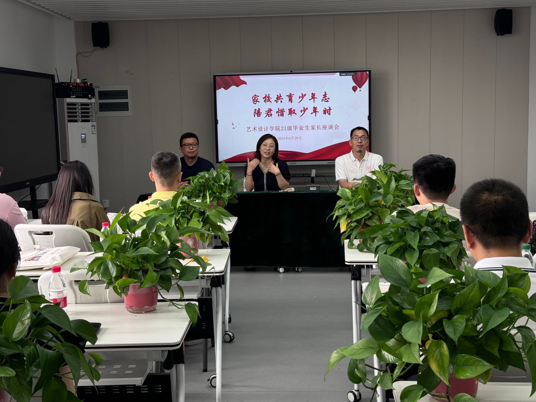 6月29日,艺术设计学院举办21级毕业生家长座谈会。艺术设计学院党总支书记、家长学校校长彭曼,副院长汪智强,党总支副书记赵喜恒及十余名毕业生及家长共同参与,开展21级毕业生家长座谈会,共同探讨学生成长之路,展望毕业生们的未来前景。