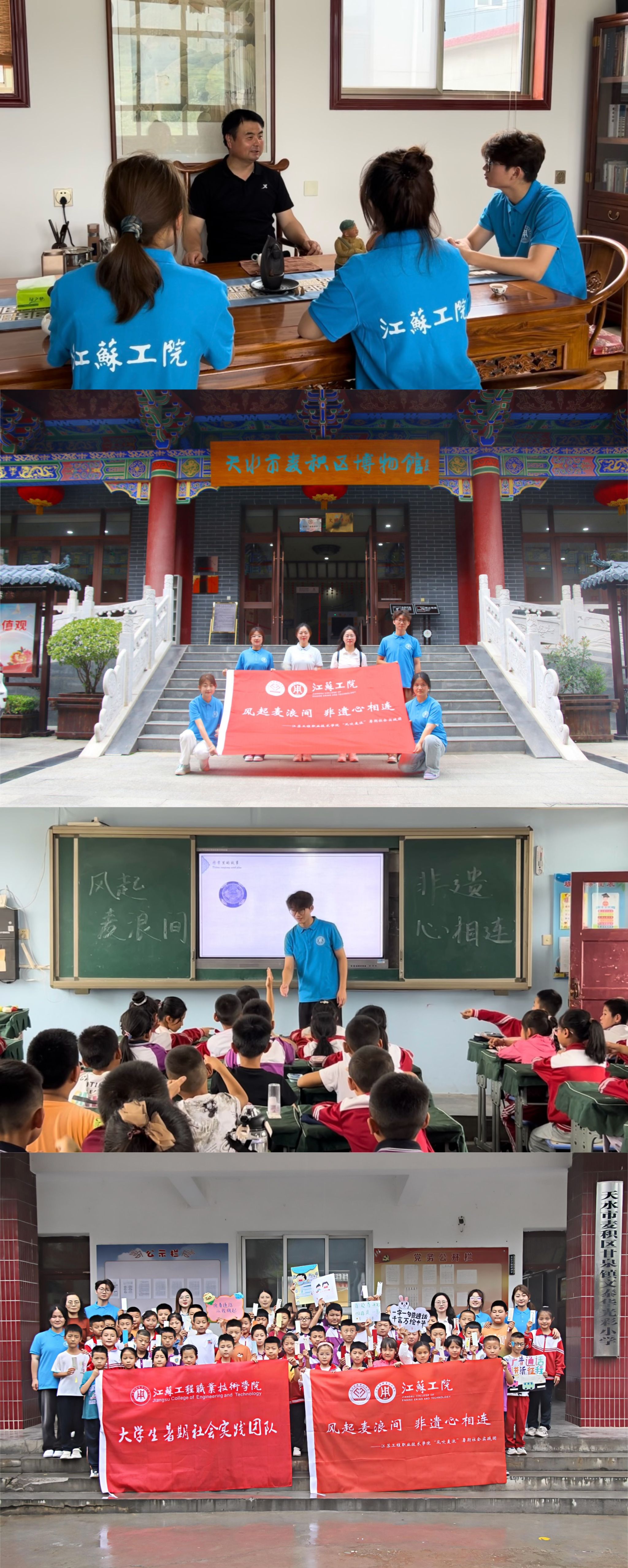 为深度发掘非遗魅力,传承中华优秀传统文化,助力乡村振兴,经济管理学院“风吹麦浪”暑期社会实践团于7月6日至11日在甘肃麦积开展了“风起麦浪间,非遗心相连”暑期社会实践活动。团队成员先后开展了参观麦积区博物馆、探寻麦积山石窟、采访麦积泥塑非遗传承人王子斌、开展非遗乡土调研、非遗文化进校园志愿服务等社会实践活动。