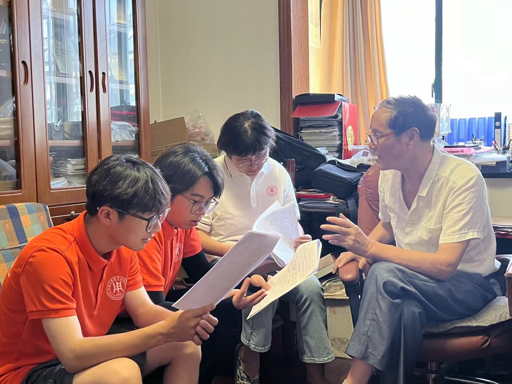 海门山歌代表性传承人崔立民,他在音乐领域有着深厚的造诣,致力于海门民歌的挖掘整理、创作研究、传承教育等工作。在访谈中,崔老师回顾了自己几十年间致力于海门山歌传承的奋斗历程,介绍了海门山歌的分类、音乐特色及其独特的音乐魅力,指导团队成员查看了海门山歌的书籍、曲谱、音频、视频等资料,还亲自上阵为团队成员示范演唱海门山歌,团队成员纷纷跟随他的节奏学唱了几句海门山歌。