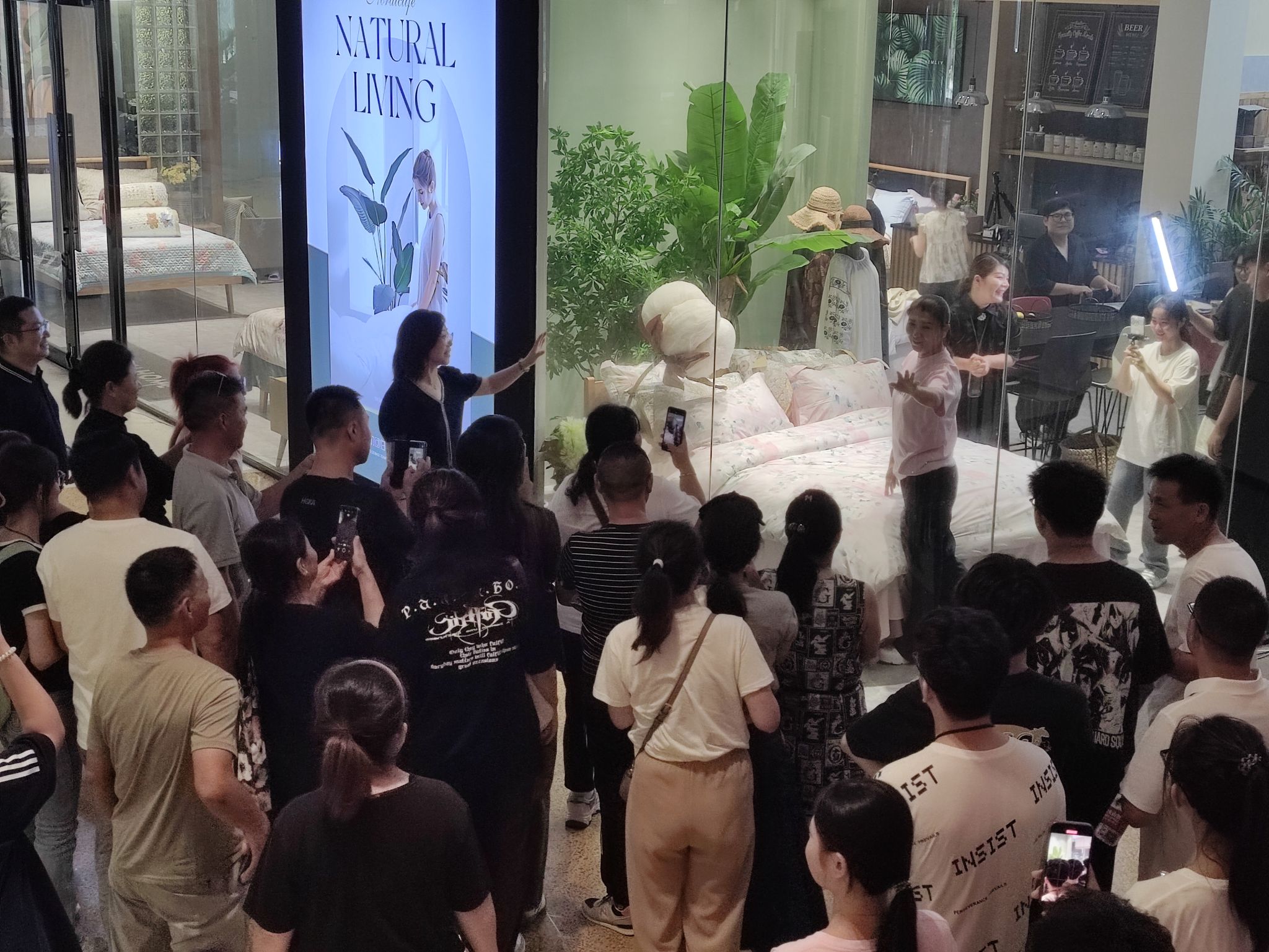 纤意坊直播生态中心负责人、总经理沈建东带领大家实地参观中心,直观让新生们感受到千亿级产业下的产品、品牌、企业、职业等面貌。他强调,在新质生产力发展背景下,各行业正经历深刻变革,产业的迭代对产品、渠道、人才等需求都在发生着质的变化,身处链接世界的家纺产业带,科技加速产业前端变革、数智数转驱动中端更新、品牌升级瞄准价值高链,鼓励新生在未来的学习中要实践与创新双驱动。