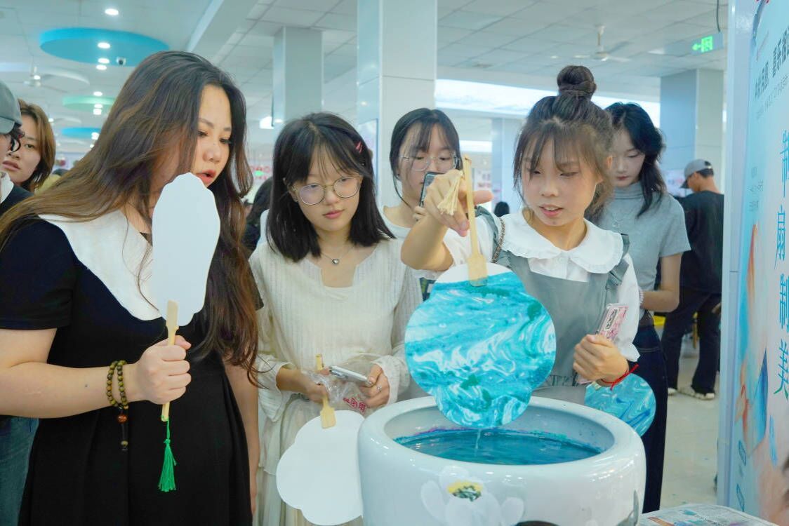 以漆为笔、以水为墨,以扇为载体,尽显诗情画意。9月17日,艺术设计学院组织承办了“扇绘未来,制扇至美”非遗漆画制作活动。在志愿者悉心指导下,学生们滴入自己中意的漆色,用玻璃棒搅拌将漆色晕开,手持扇柄旋转浸入染缸。一把把充满个性和创意的漆扇在学生们手中诞生,成就感与喜悦溢于言表。此次活动激发了工院学子对传统文化的探求欲望,在手工制作中获得成功的体验,在文化传承中感受传统文化的力量,也为中秋佳节增添了一份别样的喜庆氛围。