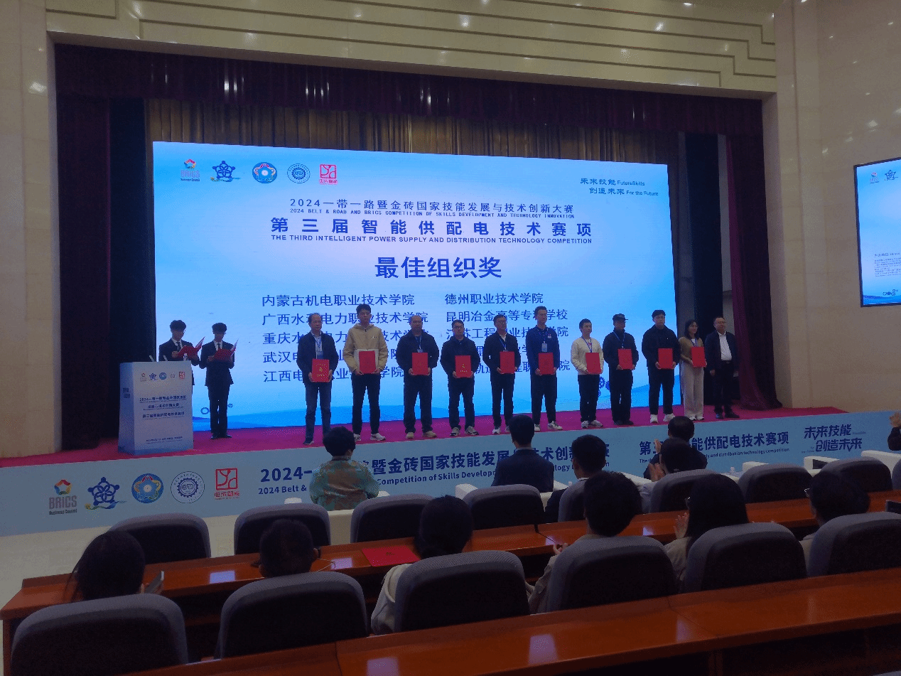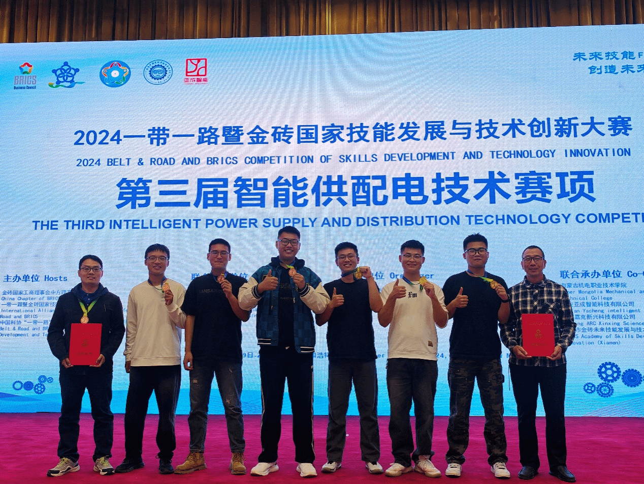 9月23日,“一带一路”暨金砖国家技能发展与技术创新大赛之第三届智能供配电技术赛项在内蒙古机电职业技术学院圆满落幕。我校参赛教师高涛获教师组三等奖,学生组参赛学生王子阳、崔腾飞、郭传奇获学生组一等奖,学生组参赛学生李宇晗,朱仰钊,朱海航获学生组三等奖,指导教师浦振托、贲礼进获优秀指导教师,我校获最佳组织奖。