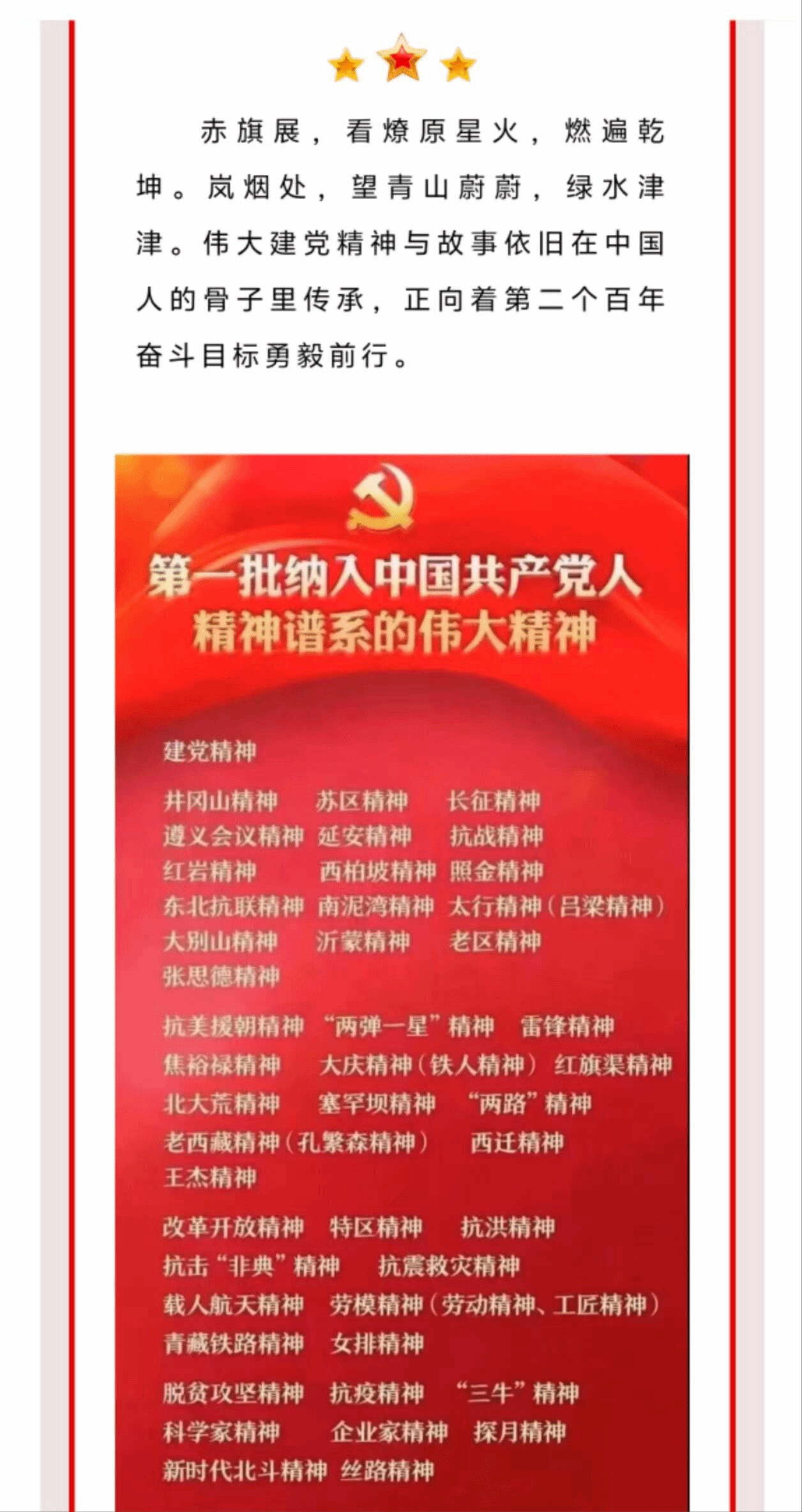 国庆节期间,经济管理学院推出了“赓续红色基因,共庆祖国华诞”学思践悟中国共产党人精神谱系述读活动。本次的述读活动,共七篇,分别是伟大建党精神、井冈山精神、长征精神、延安精神、太行精神、抗美援朝精神、“两弹一星”精神,由学院优秀团支部书记们述读。本次的述读活动以学院微信推文的形式呈现。同学们纷纷表示将更加自觉传承红色基因,赓续红色血脉,汲取精神力量,将自己的青春热血融入到中国式现代化建设的新征程中。