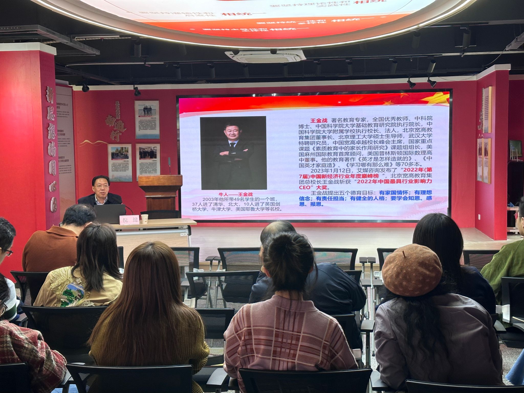 讲座中,倪健围绕时代使命、风险挑战和应对策略三个方面就教育系统的意识形态工作特别是高校意识形态工作作了系统的论述。他回顾了习近平总书记关于新时代意识形态工作的重要论述,强调意识形态工作在“两个大局”时代背景下所肩负的“极端重要”的使命地位。他指出,作为新时代思想政治理论课这一“关键课程”的教学主体,加强高校思政课教师队伍建设既是巩固高校意识形态主阵地的重要途径,也是牢牢把握党对教育系统意识形态工作领导权的重要路径。他提出,广大教师要丰富课堂内容,创新教学手段,引导广大青年循文化根基、识当代中国、解世界之问,肩负起建设中华民族现代文明的教育使命。