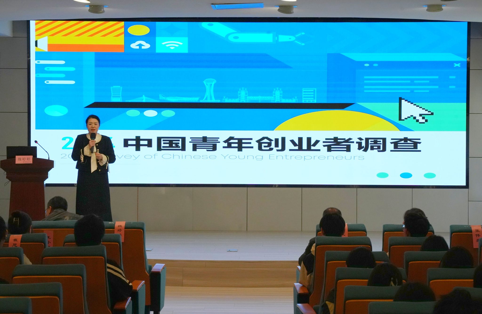 魏婷婷基于青年创业者的画像,从创业驱动因素、所选赛道、启动资金、团队搭建、财务融资等方面分析了青年创业的生态现状,讲述了一些成功的青年创业案例对大学生创业的启示。在互动环节,同学们就自己创业方面的项目、团队、资源等困惑提出自己的问题,魏婷婷对大家的问题给予解答。