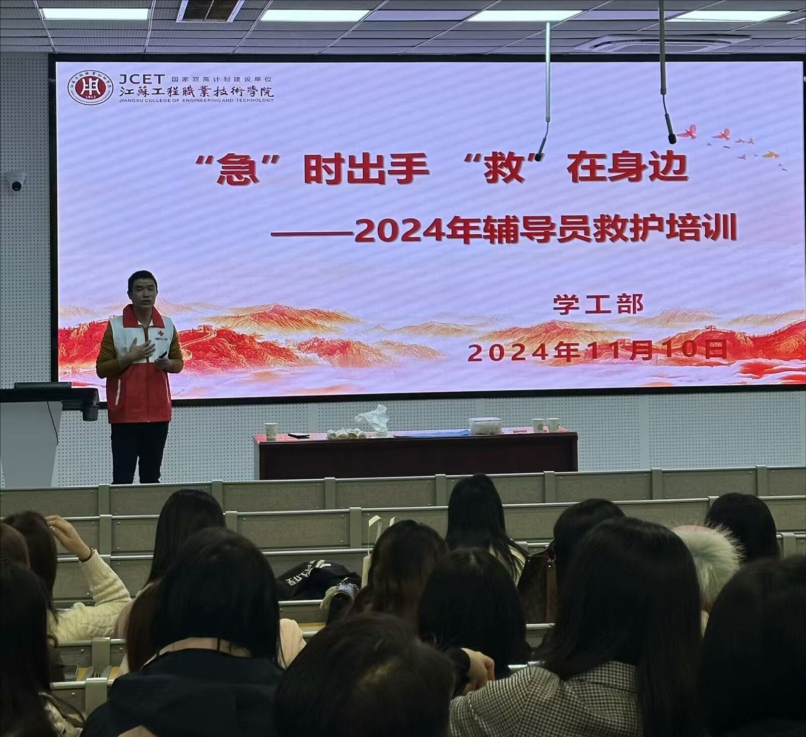 11月10日,南通市红十字会施荣荣老师及其团队应邀对我校辅导员进行应急救护专项培训和取证考核。我校近70名辅导员参加此次培训。
