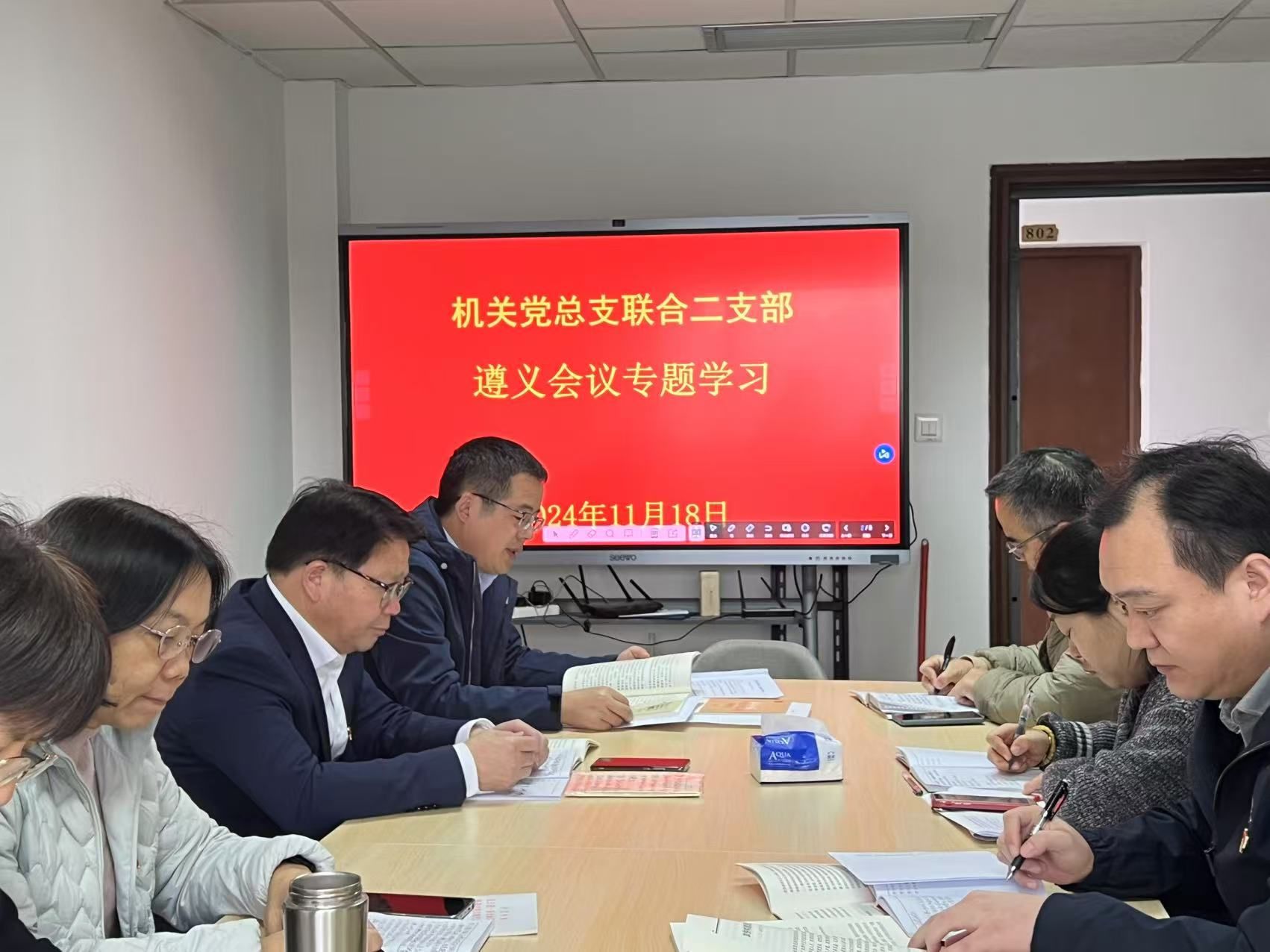 11月18日,联合二党支部在崇謇楼801开展了“让遵义会议精神永放光芒”主题党日活动。活动由支部书记倪红耀主持,支部全体党员参加。