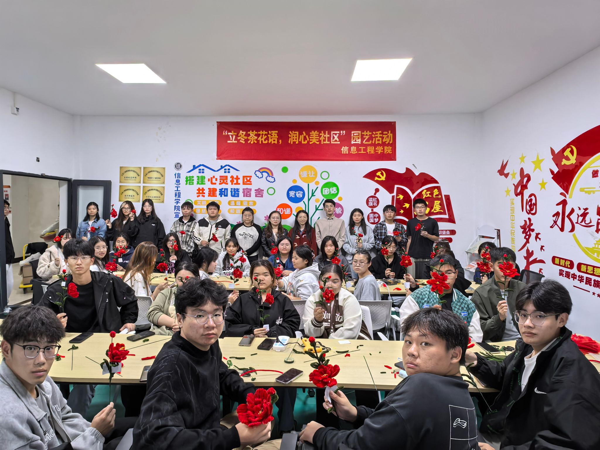 为深化“一站式”学生社区建设,挖掘中华传统节日文化内涵,11月13日—15日,信息工程学院“绿意育人”园艺社团和红石榴辅导员工作室在崇川、海门两校区学生社区举办“立冬茶花语,润心美社区”活动。信息工程学院党总支副书记高飞、学工处詹蕾老师、相关学院辅导员和学生代表参加活动。