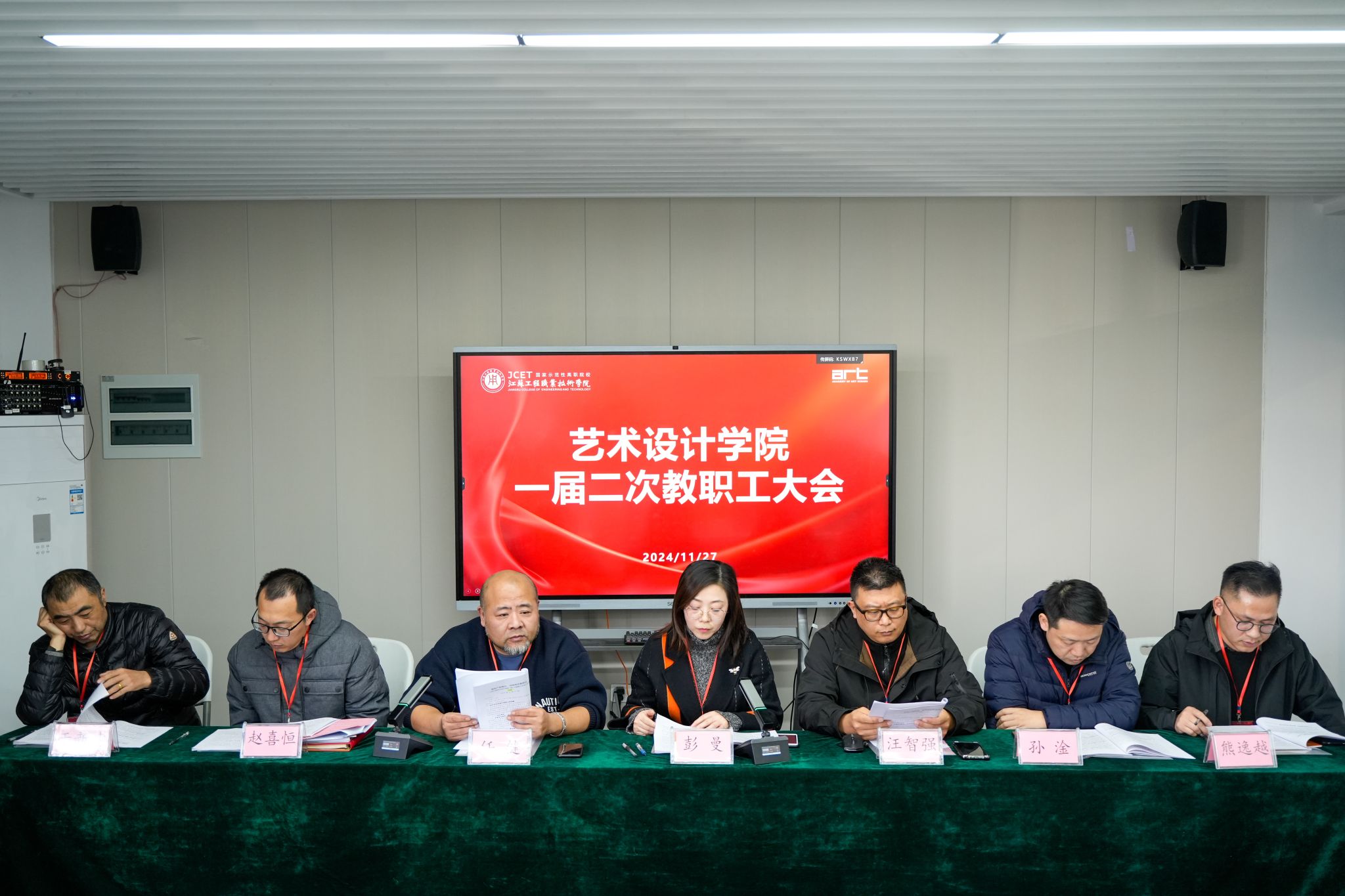 11月27日下午,艺术设计学院第一届二次教职工代表大会在有恒楼222会议室召开。大会的主题为“聚焦产教融合,保障高质量建设”。艺术设计学院党总支书记彭曼、副书记赵喜恒分别主持大会预备会议、开幕式、各次会议和闭幕式。艺术设计学院58位教职工参加大会并行使了表决权。