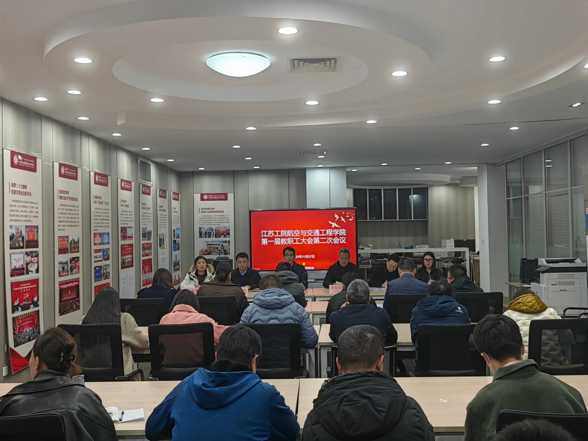 11月27日下午,航空与交通工程学院第一届二次教职工代表大会在强毅楼一楼会议室召开。学院全体教职工参加大会,大会由学院党总支书记曹钰主持。