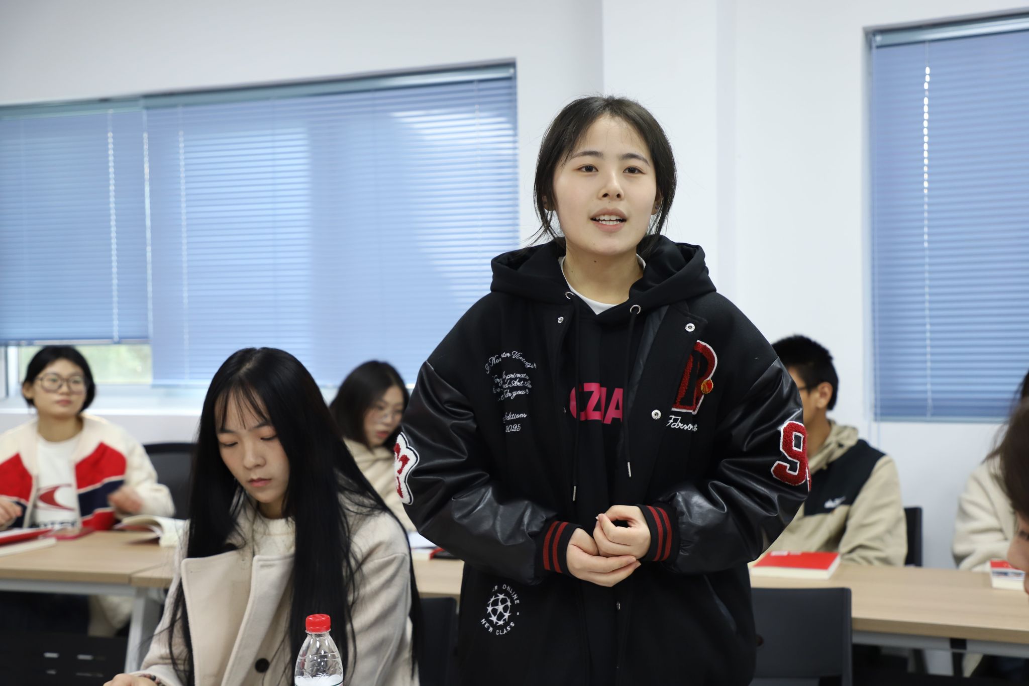 学生代表仲鹏优、叶羽颜、周钰政结合自身经历分别从“职业规划展未来”“技能大赛强本领”“志愿服务勇担当”三个方面分享了读书感悟。