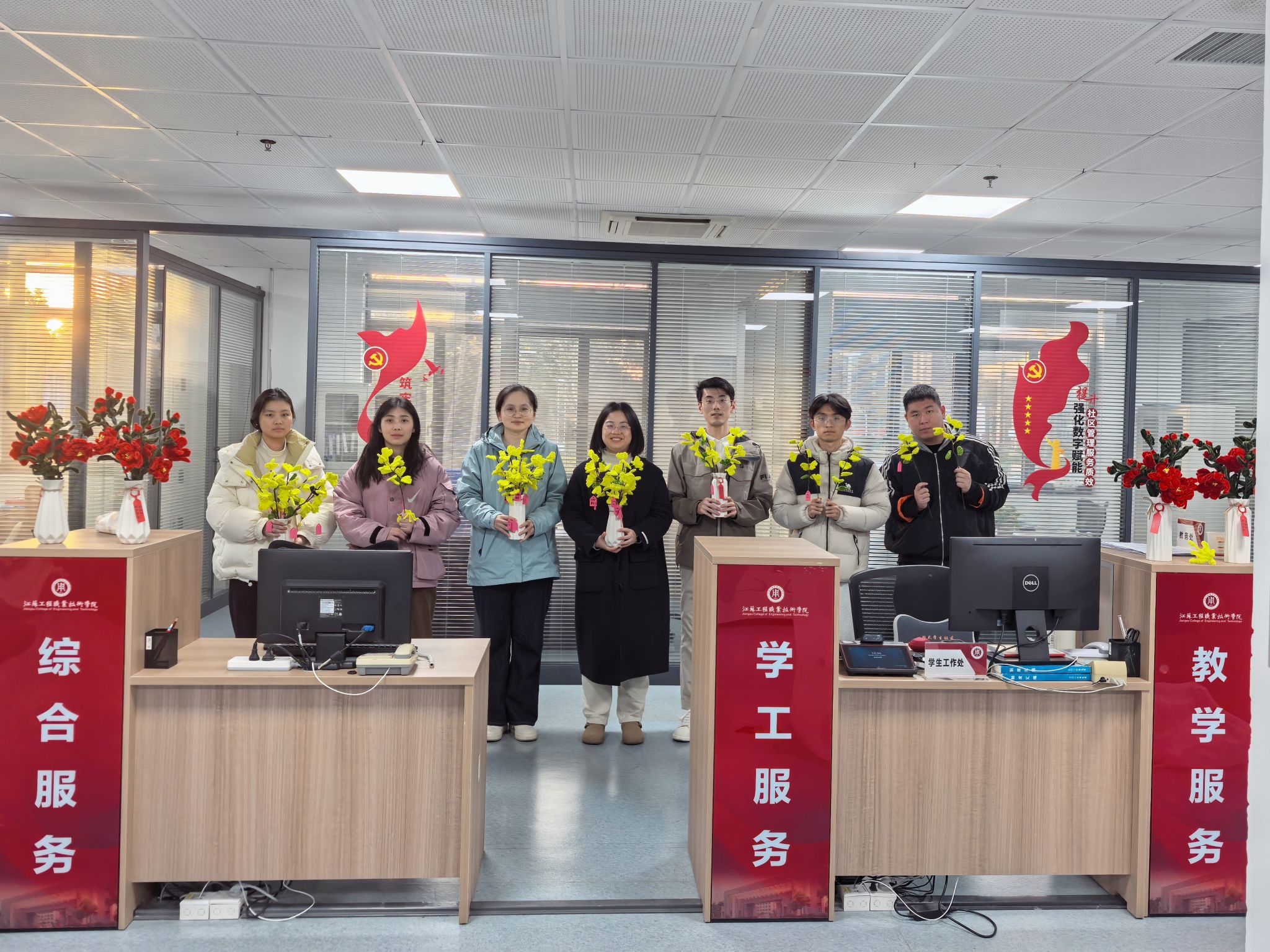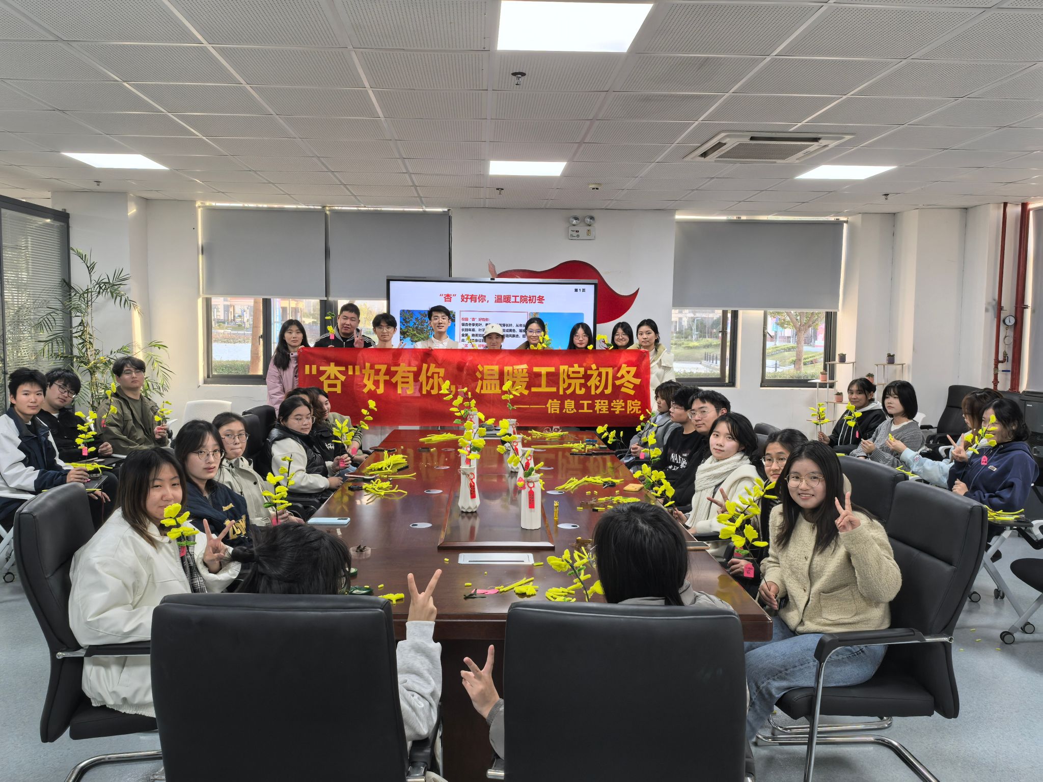为深化“一站式”学生社区建设,发挥劳动教育的主观能动性,培养学生创造美的能力,11月27日和30日,信息工程学院“绿意育人”园艺社团和红石榴辅导员工作室在海门校区“一站式”学生社区中心举办两场“‘杏’好有你,温暖工院初冬”活动。学校学工处王敏老师、学院社区辅导员韩政、相关学院老师和学生代表参加活动。