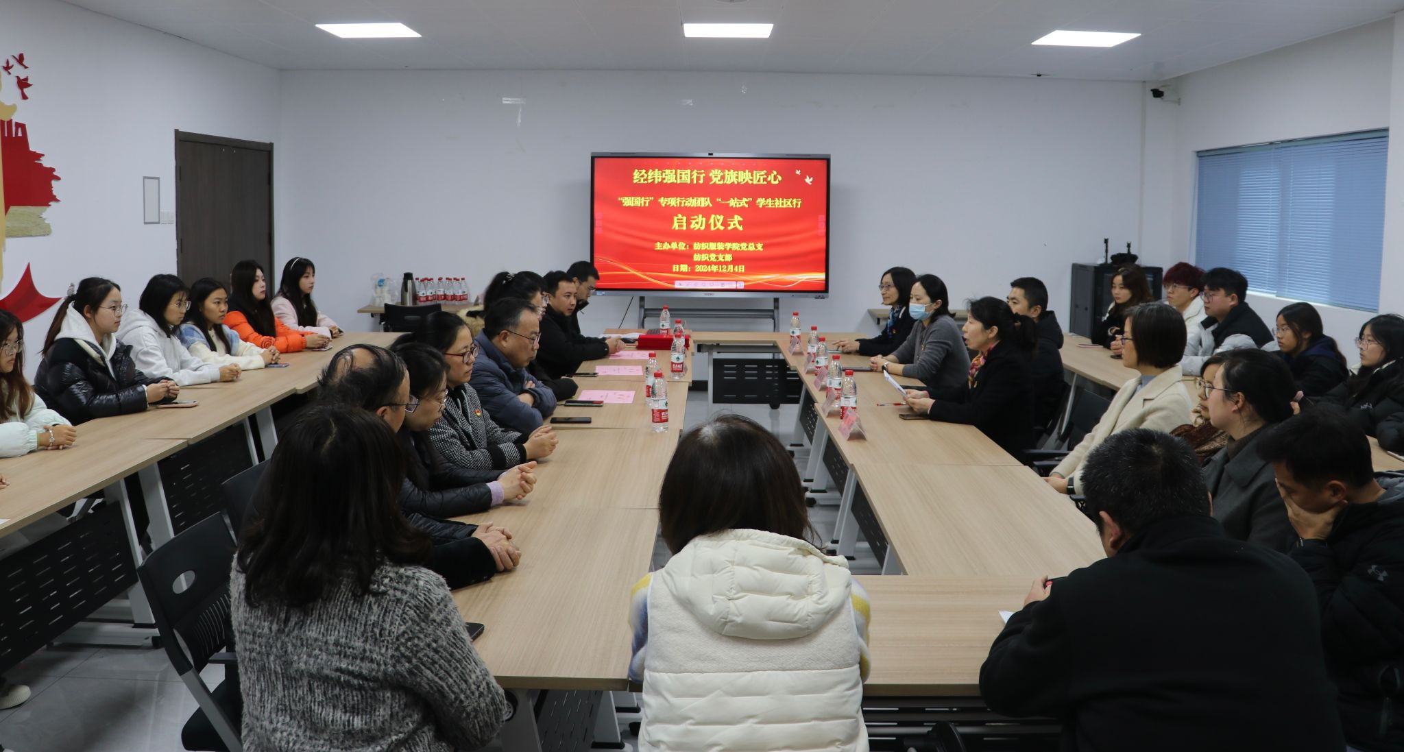 12月4日下午,全国高校“双带头人”教师党支部书记“强国行”专项行动团队“一站式”学生社区行启动仪式在校“一站式”学生社区党建多功能活动室举办。校党委委员、组织部部长仲岑然,纺织服装学院党总支书记夏爱萍,副书记刘桂阳,纺织党支部书记隋全侠,化妆品与制药党支部书记周林芳,“强国行”专项行动团队成员及学生代表40余人参加了本次活动。